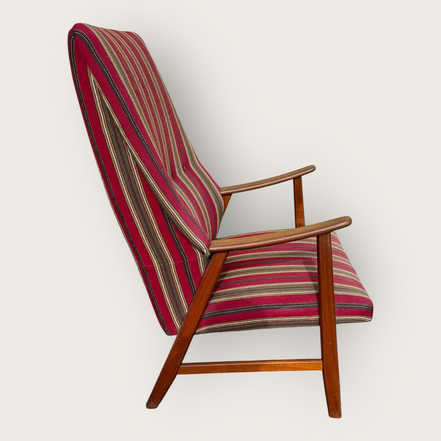 Armchair in teak and fabric, seat height 36cm, width 62cm, backrest height 103cm, Scandinavian modern from the 1960s *good condition*
