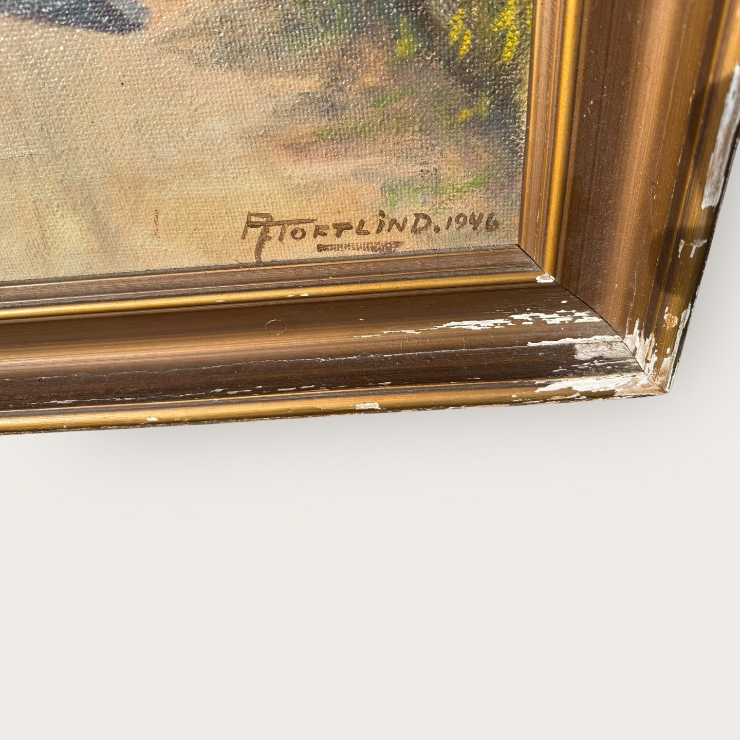A. Toftlind, Girls on a road, oil painting on canvas, some peeling on the picture frame, otherwise good condition, Dimensions with frame: 110x85cm
