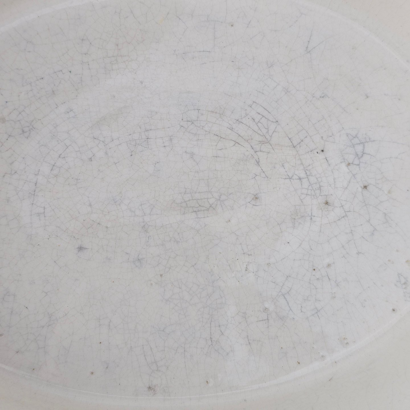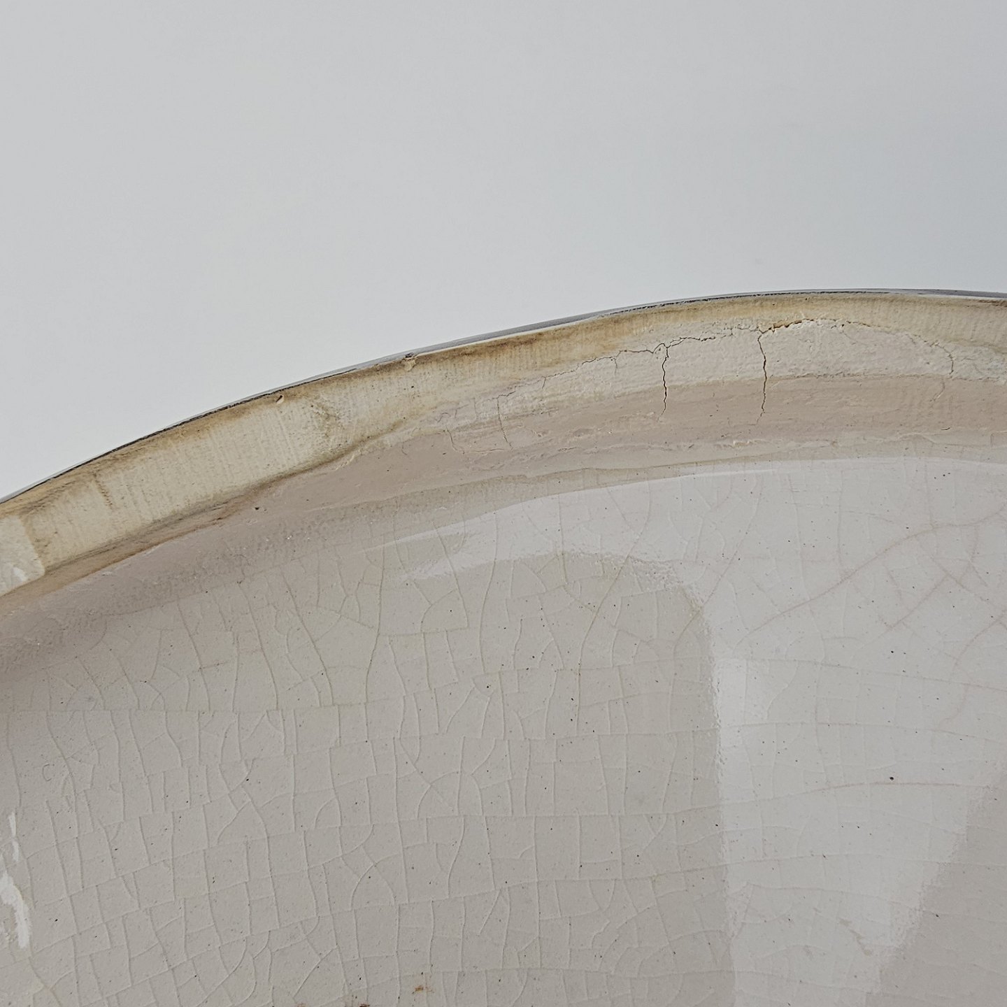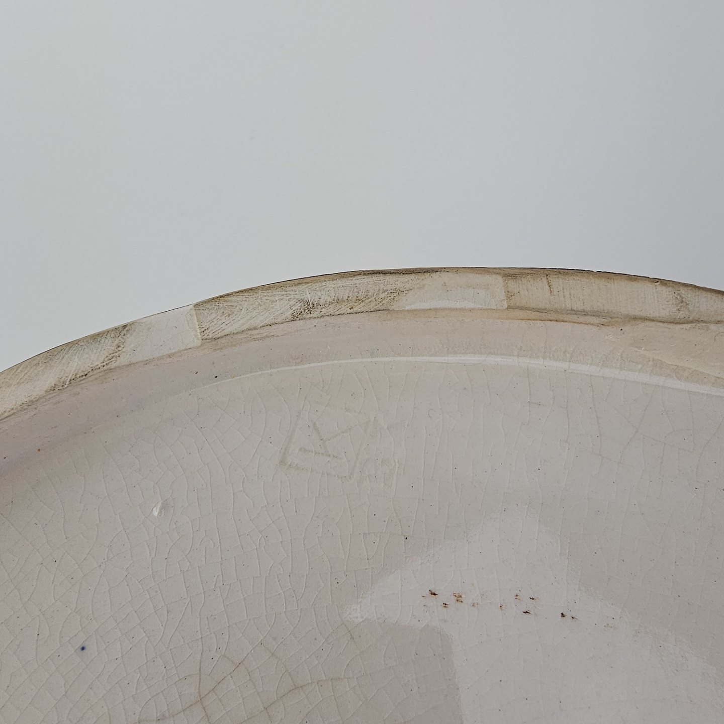 Oval jardiniere i fajance med dekoration af brun og lilla blomster