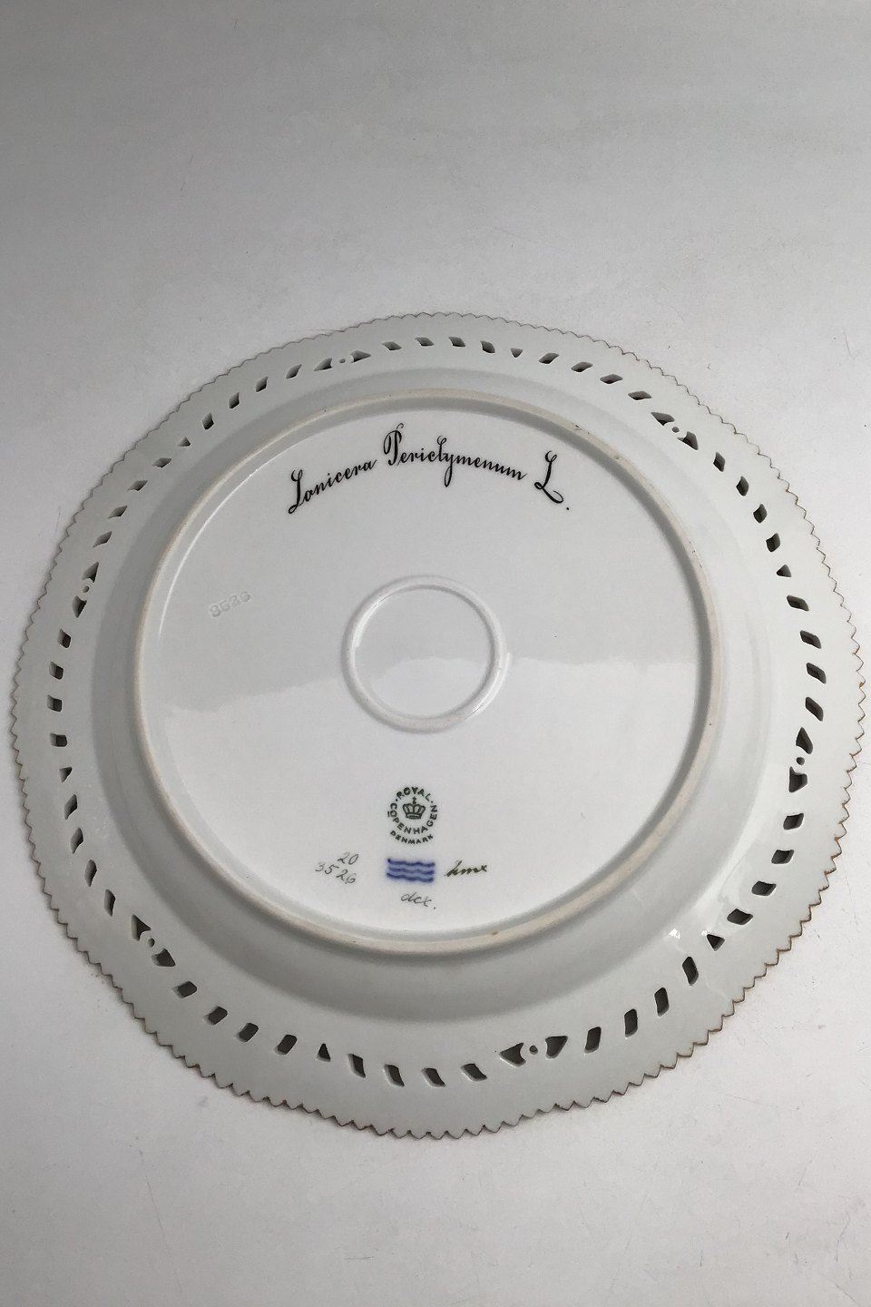 Royal Copenhagen Flora Danica Plate with pierced border No. 20/3526. Measures 27cm / 10.63 inch. 1st Quality Latin name: Lonicera Periclymenum L.