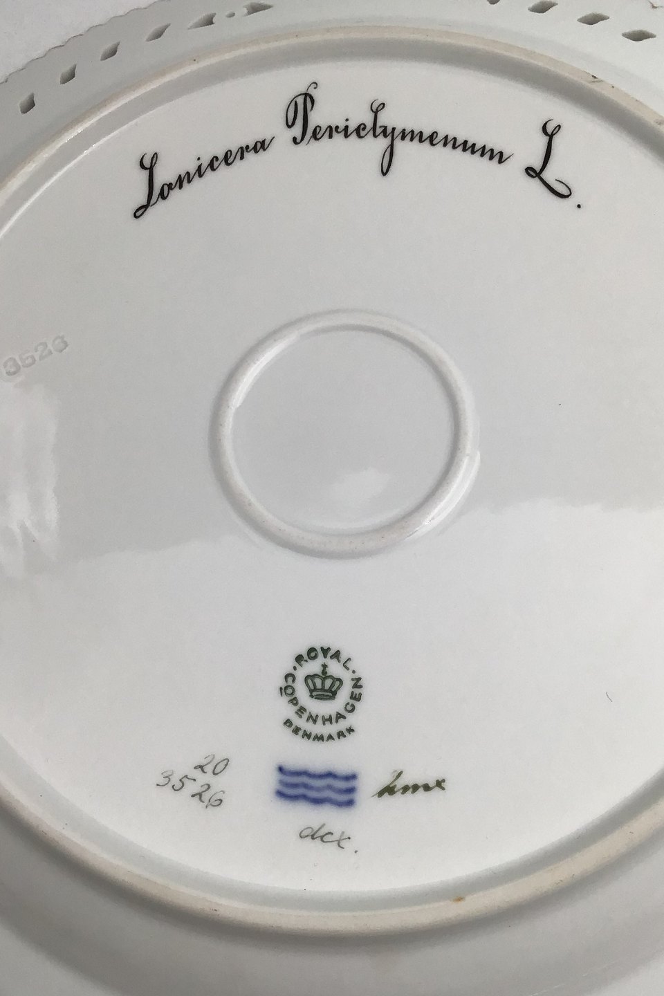 Royal Copenhagen Flora Danica Plate with pierced border No. 20/3526.
