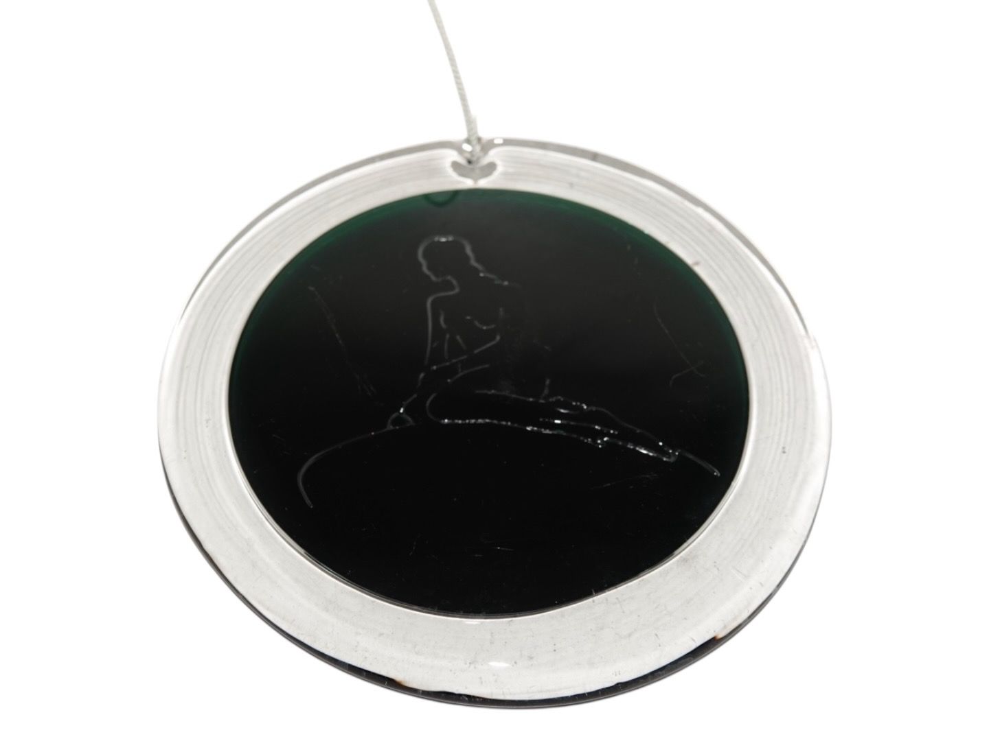 Holmegaard suncatcher with The Little Mermaid in clear and green glass.