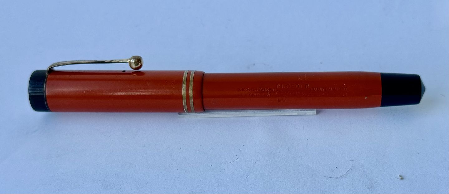 Coral red Parker Duofold fountain pen