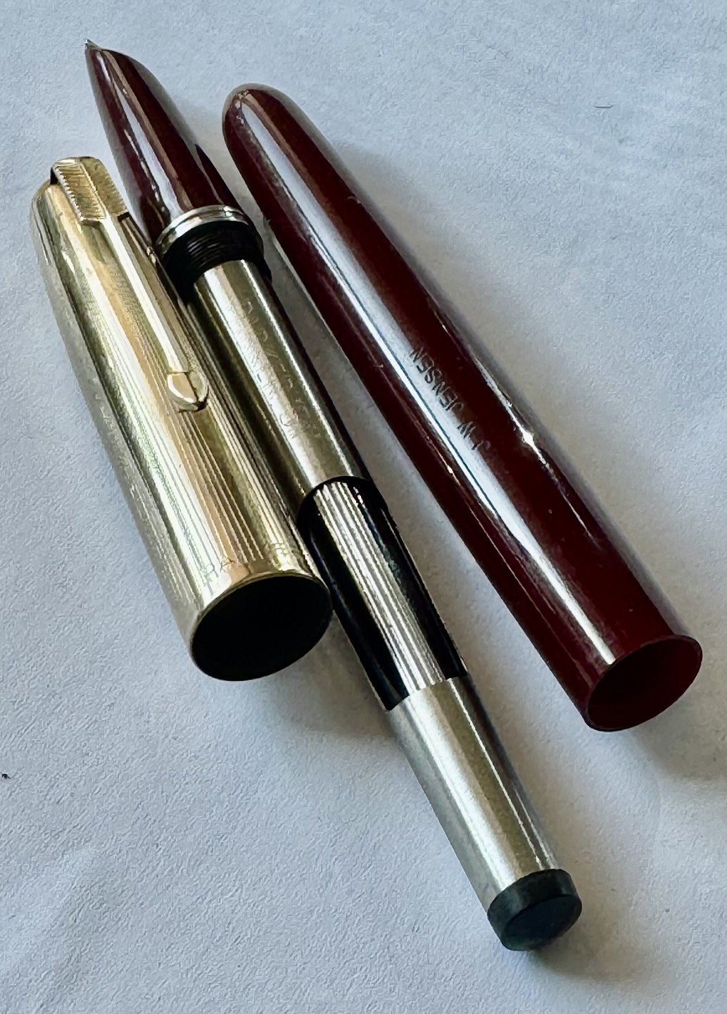 Burgundy Parker 51 fountain pen with gold rolled cap