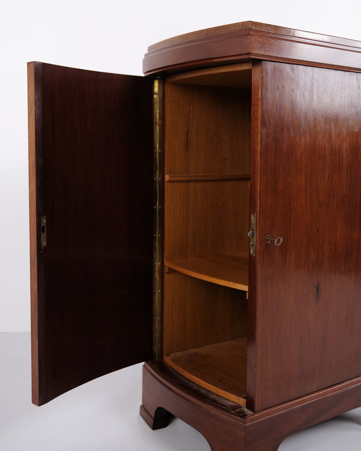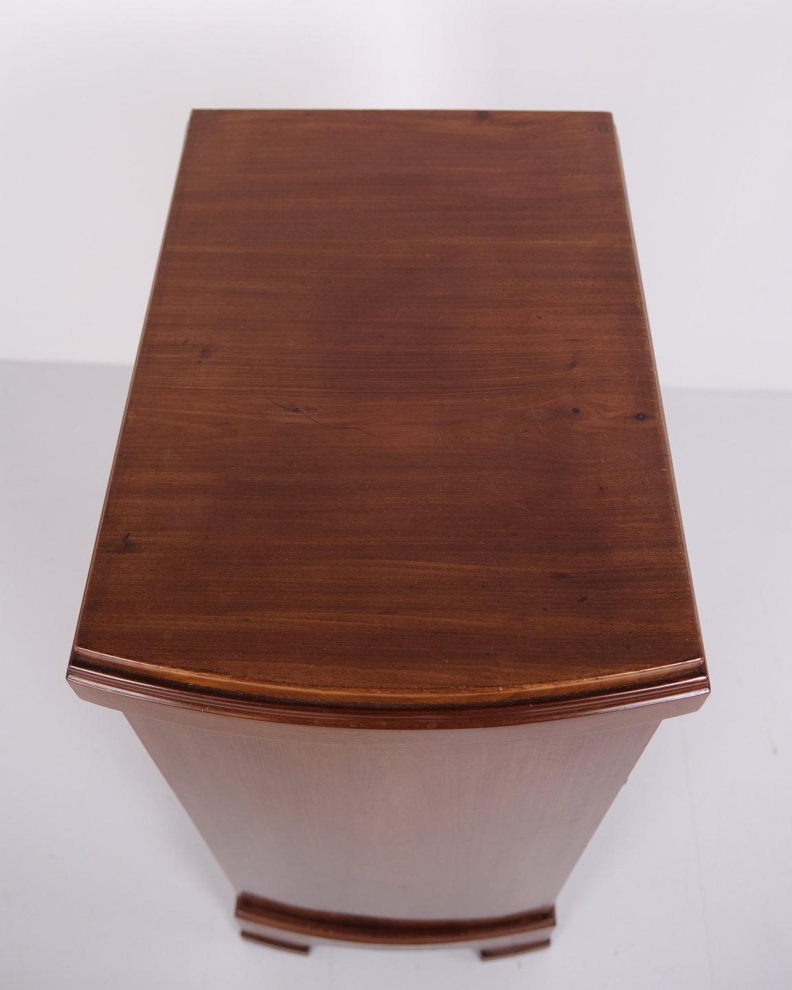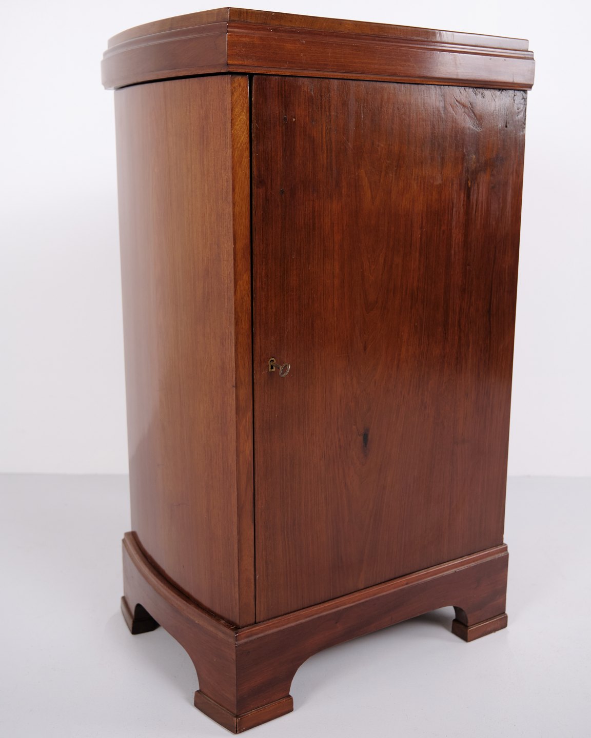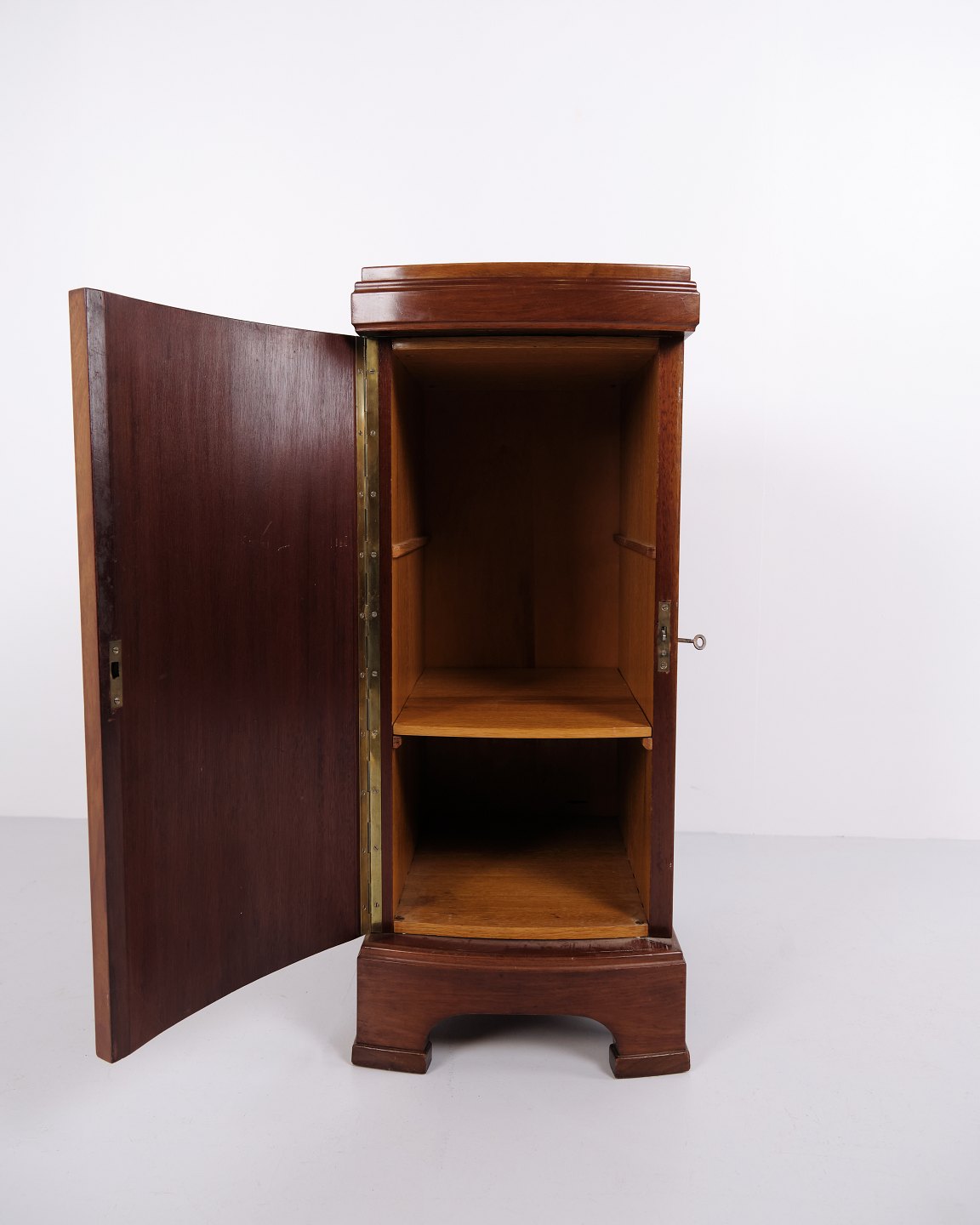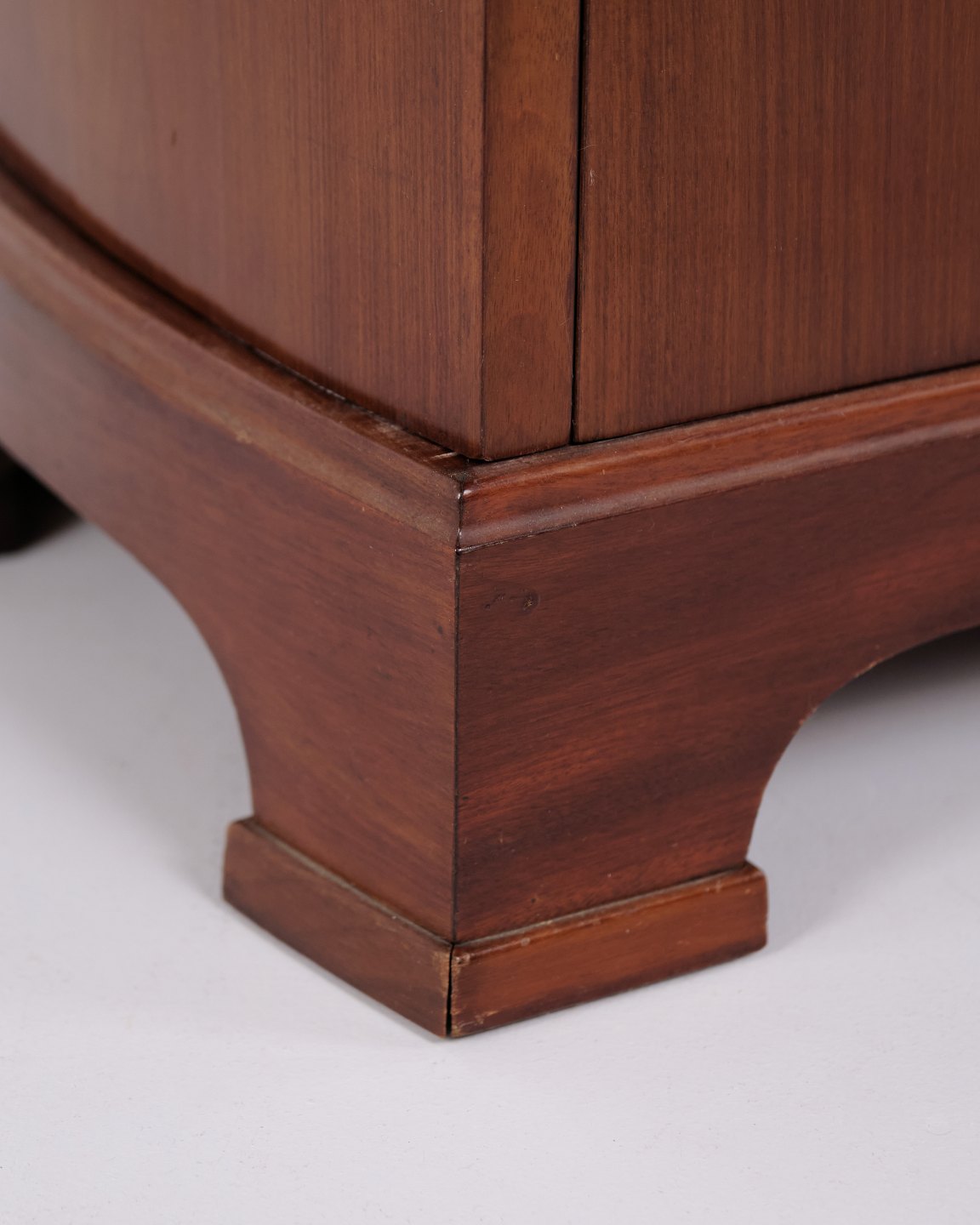 A pair of bedside tables in mahogany from the 1920s with curved front and hand-polished surface. Classic design with an elegant appearance.