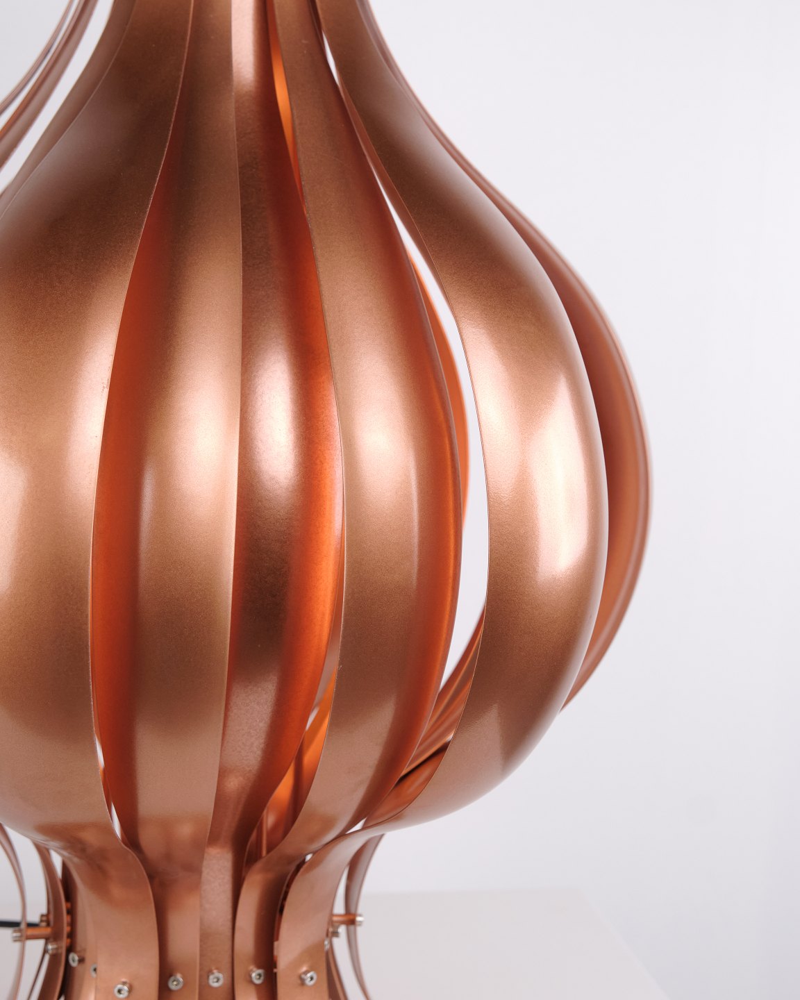 Rare Onion table lamp designed by Verner Panton in the 1970s. The lamp is made of copper and defined by its organic, layered form, creating a sculptural and decorative appearance. The construction provides a soft and atmospheric light, where reflections in the copper enhance the character of the lamp.