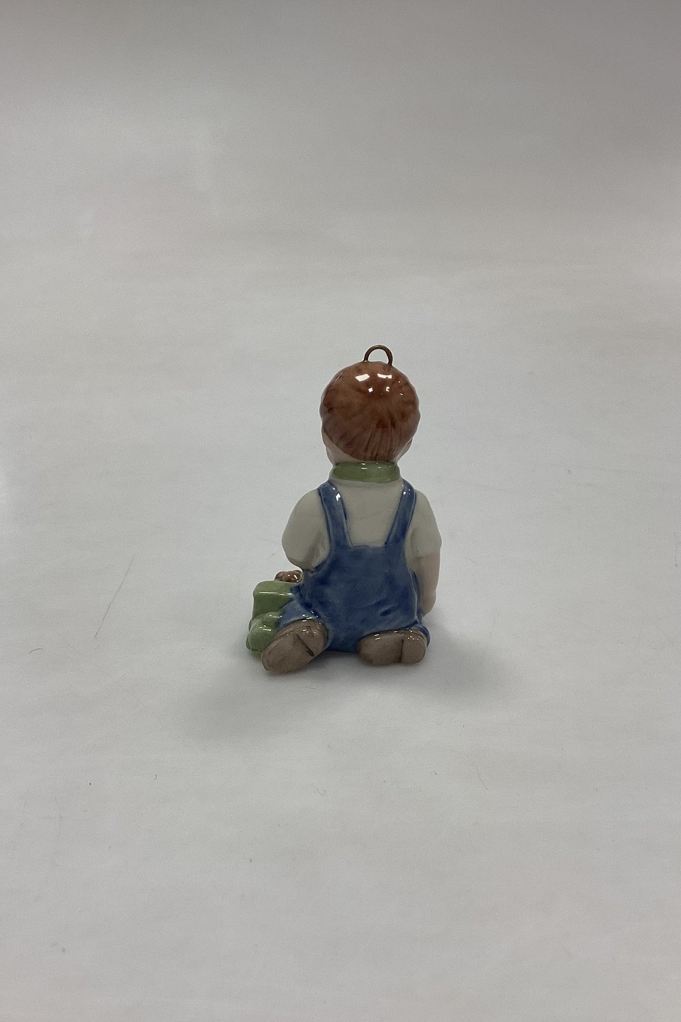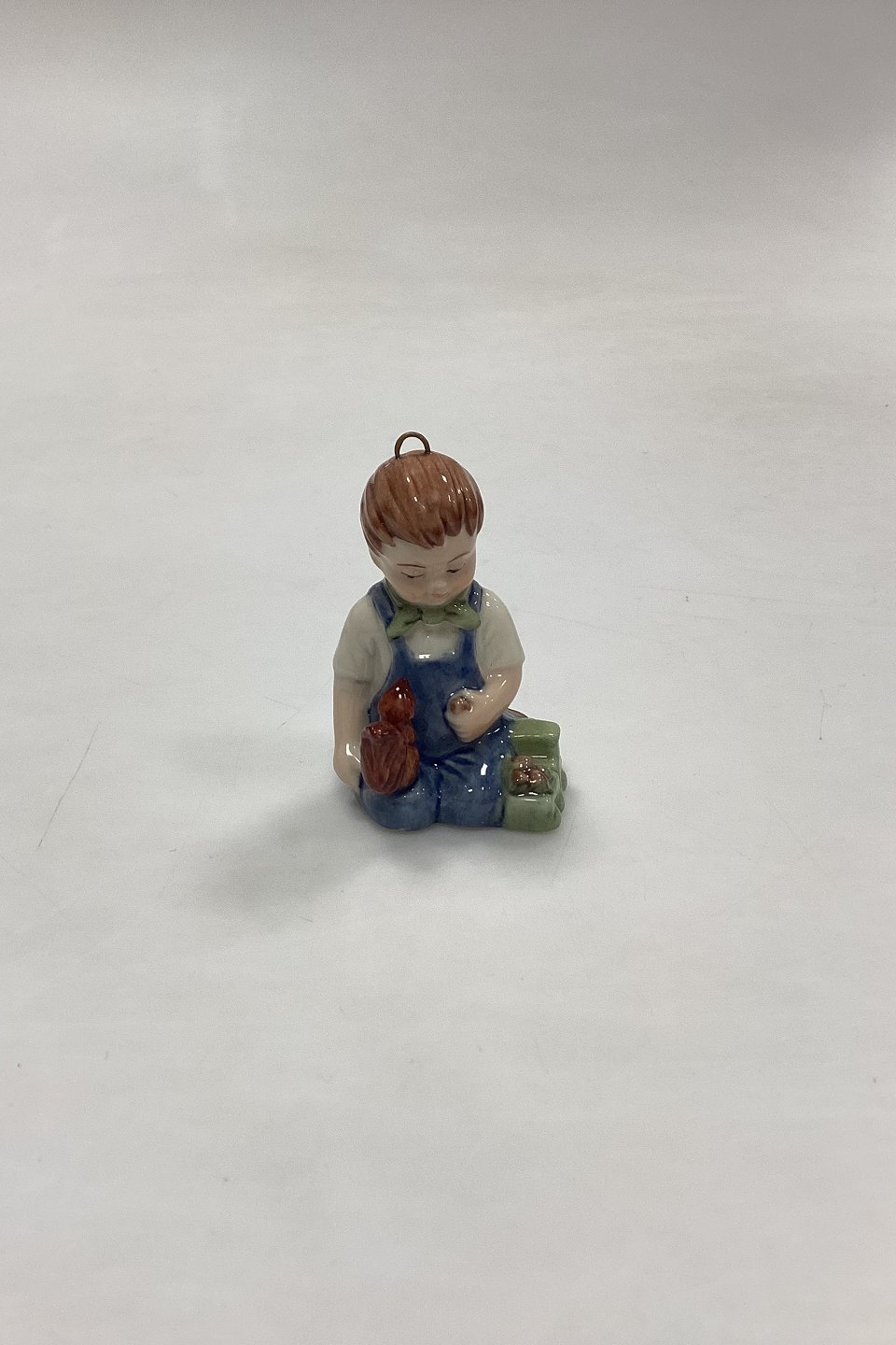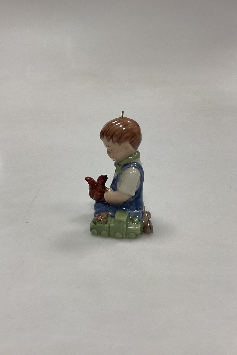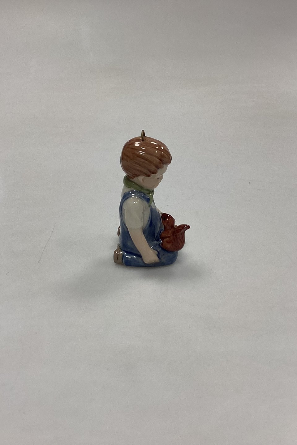 Bing and Grøndahl Collections 2001 Christmas Ornament - Christian No. 743. Designed by Sven Vestergaard. Boy with train and squirrel. Figurine for hanging.