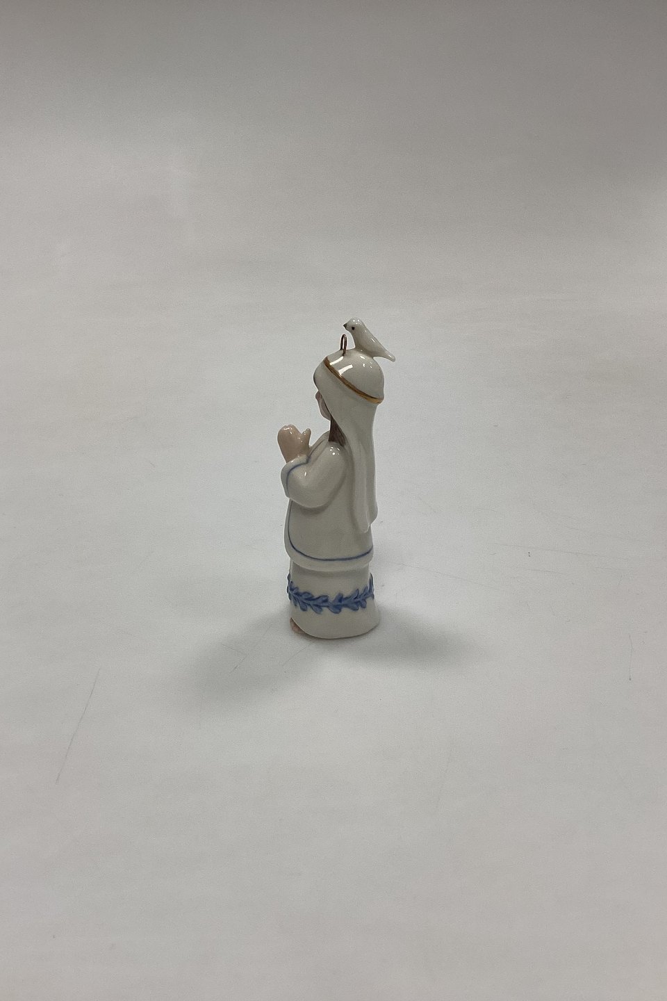Royal Copenhagen Children's Christmas 2007 Christmas Ornament Sara - No. 385. Designed by Ingrid Jensen. Girl with bird. Figurine for hanging.