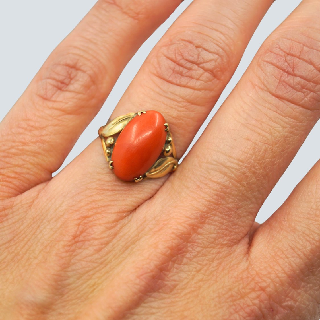 A coral ring in 14k gold