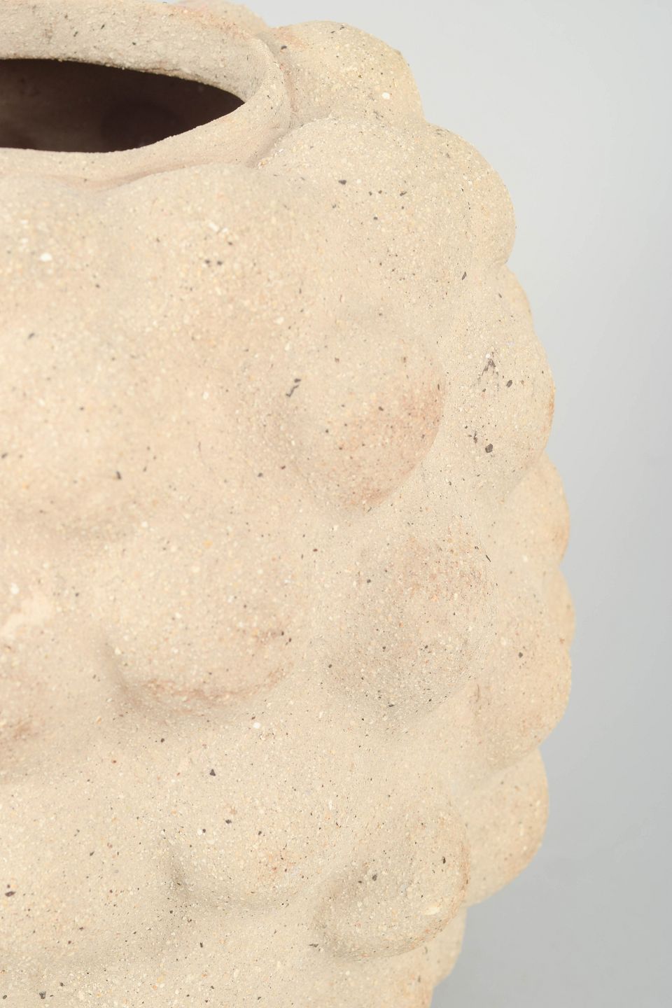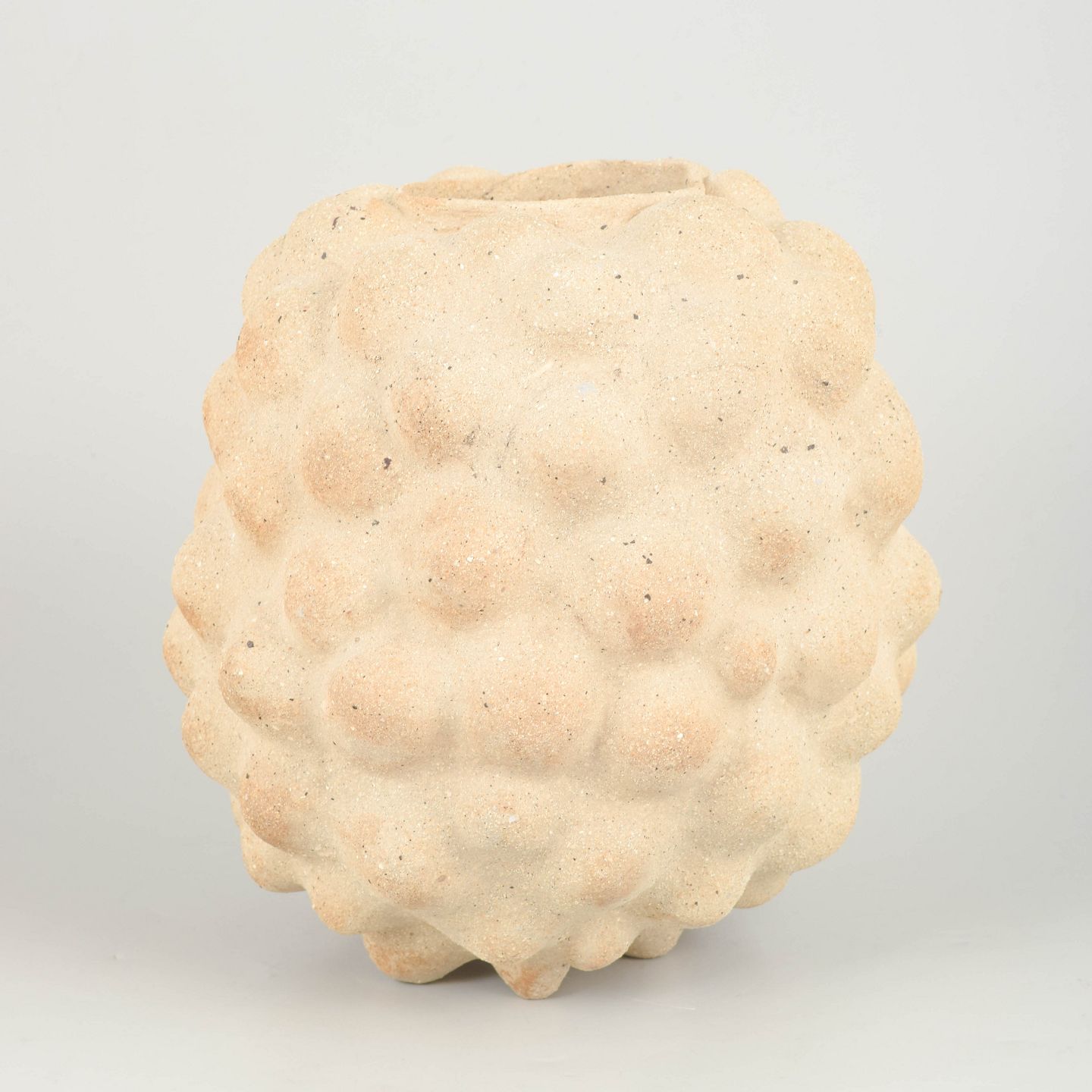 One of a kind, hand modeled, bubble shaped, vessel. This work is unglazed as the artist has developed a technique where the clay is washed to enhance its natural coarsness on the surface.