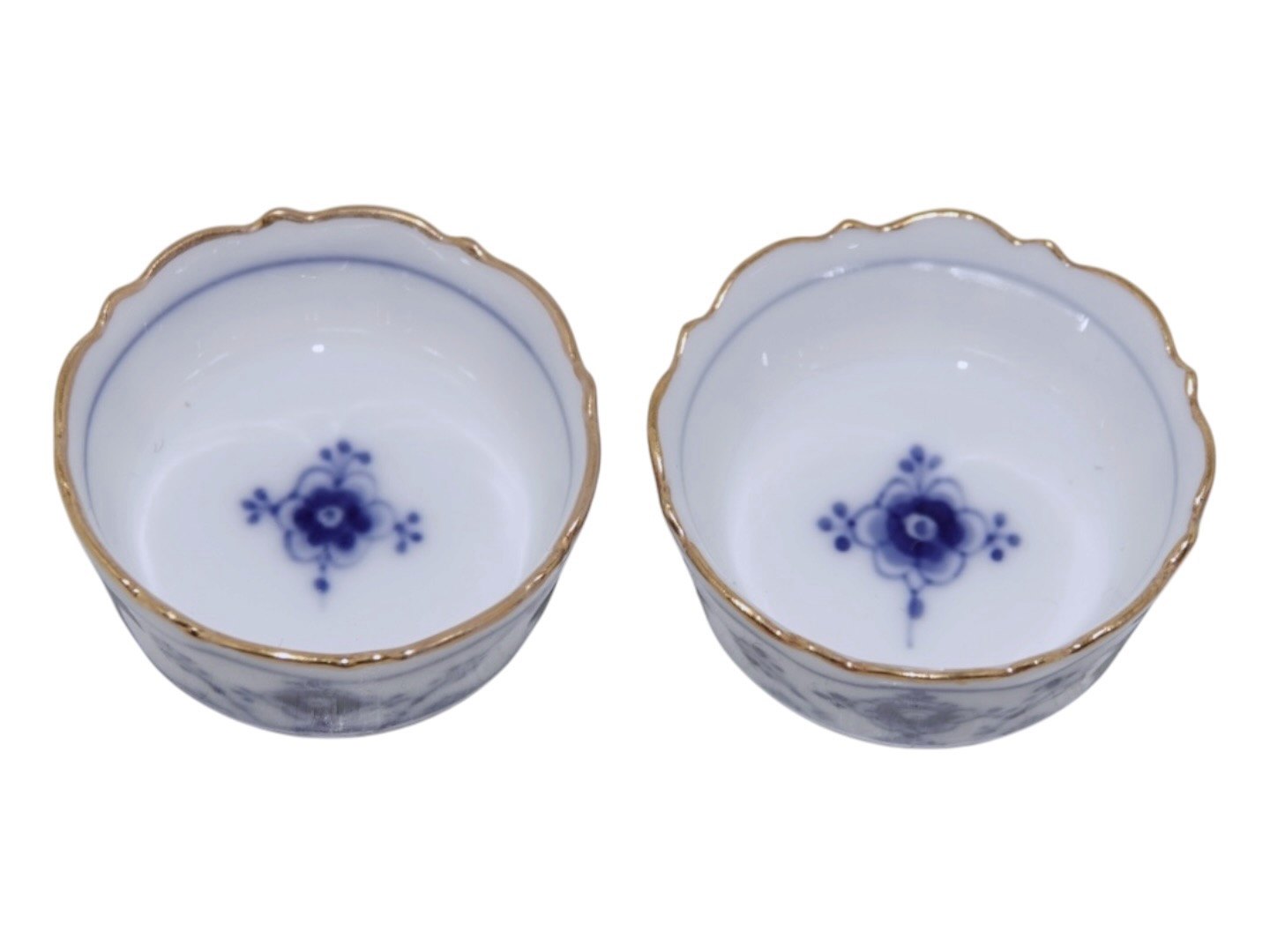 Royal Copenhagen Blue Fluted Plain with old trim, small round salt jars.