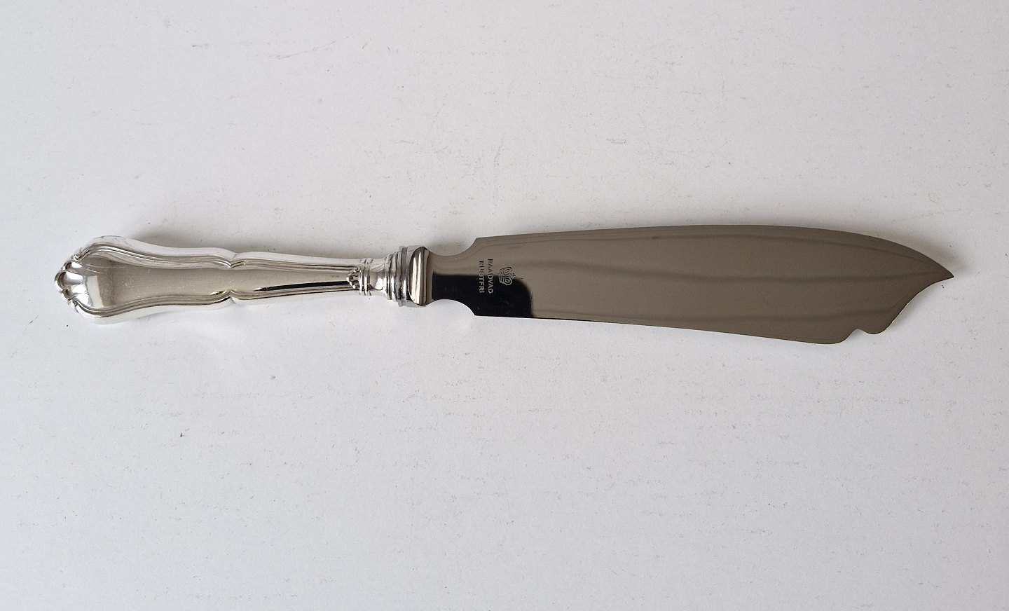 Rita large cake knife in silver and steel.