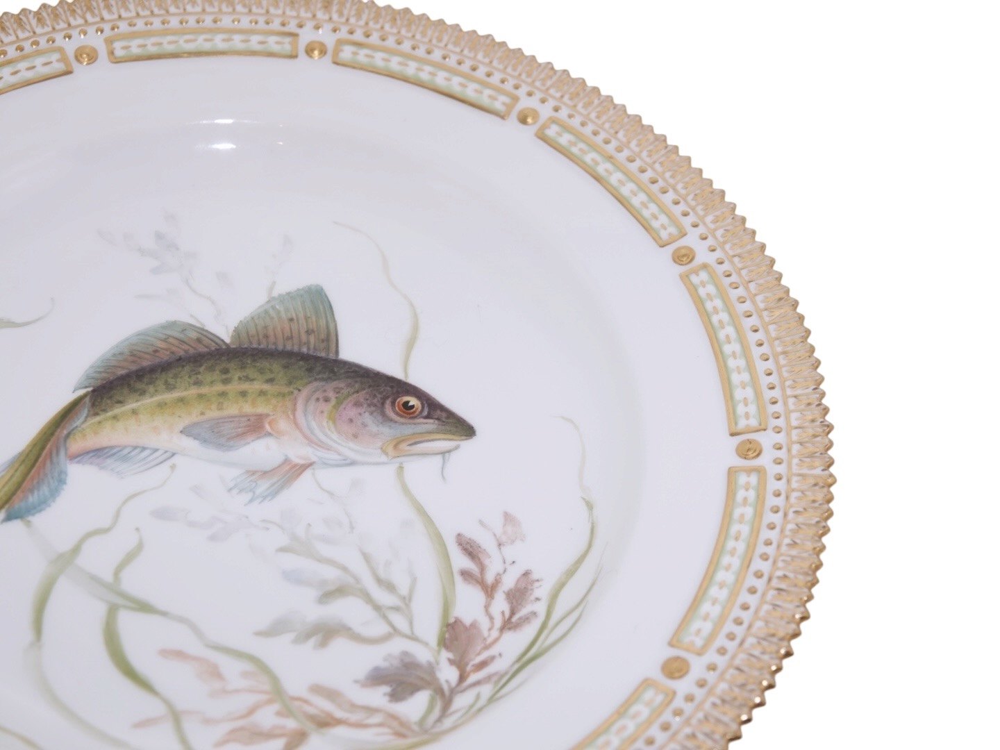 Royal Copenhagen Flora Danica, dinner plate decorated with a fish.