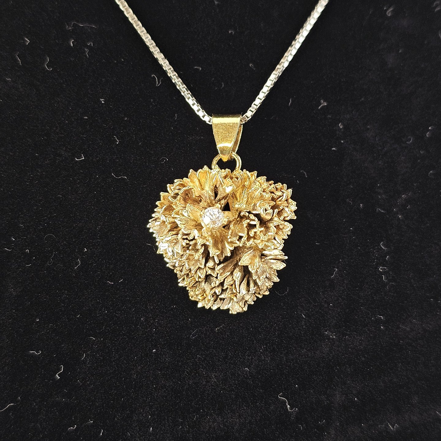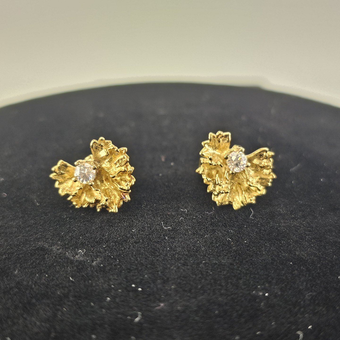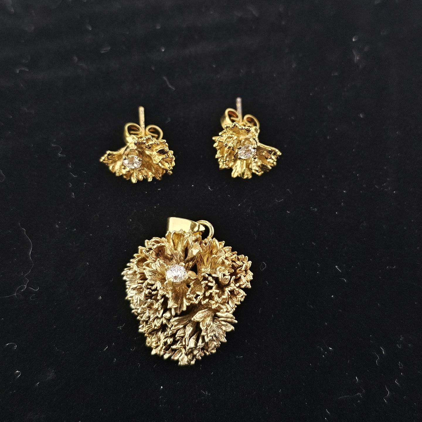 Ørestikker og vedhæng i forgyldt sterling sølv formet som en buket persille