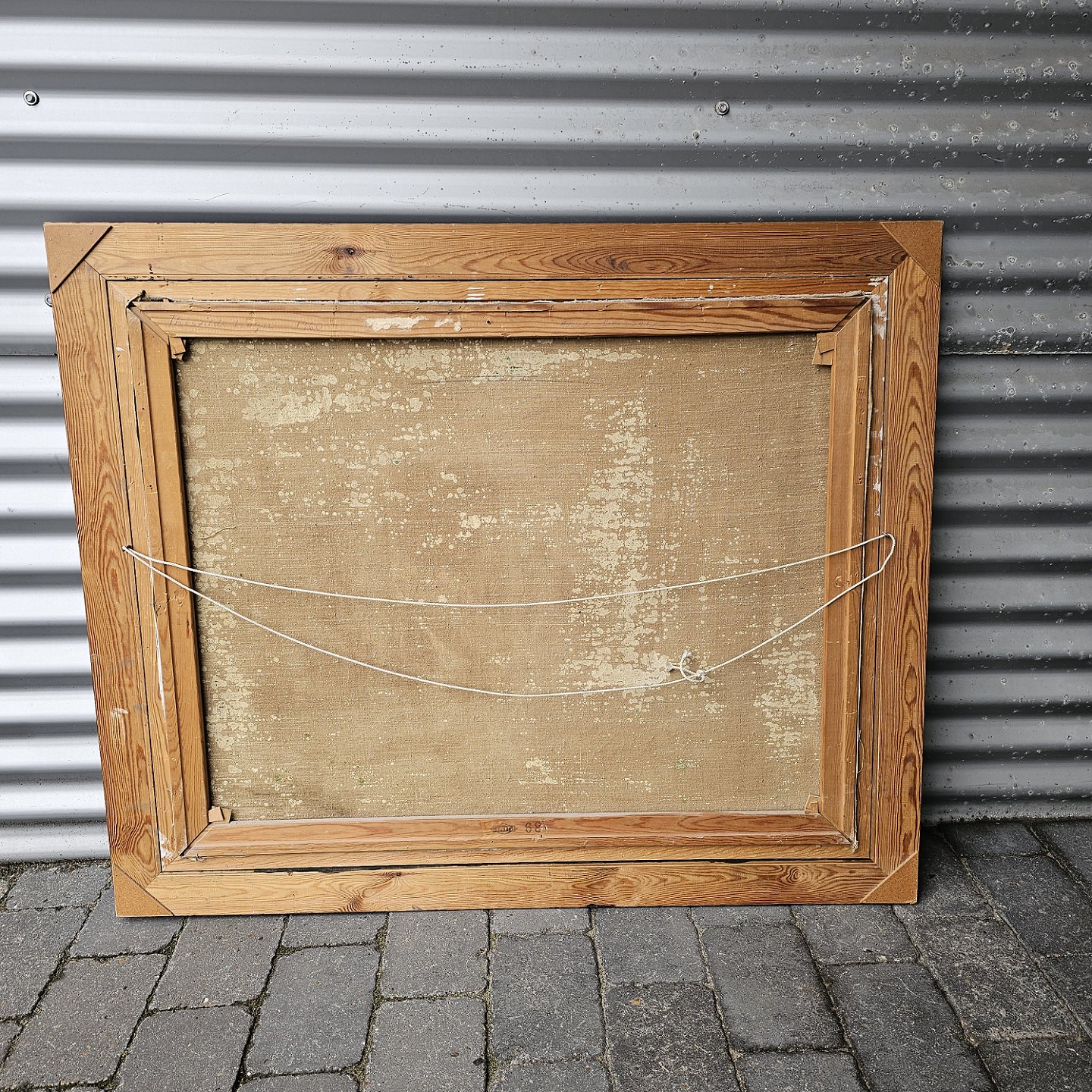 Oliemaleri på lærred med titlen Tisvilde Hegn. Monteret i sortmalet ramme med abstrakt naturmotiv, dateret 1960