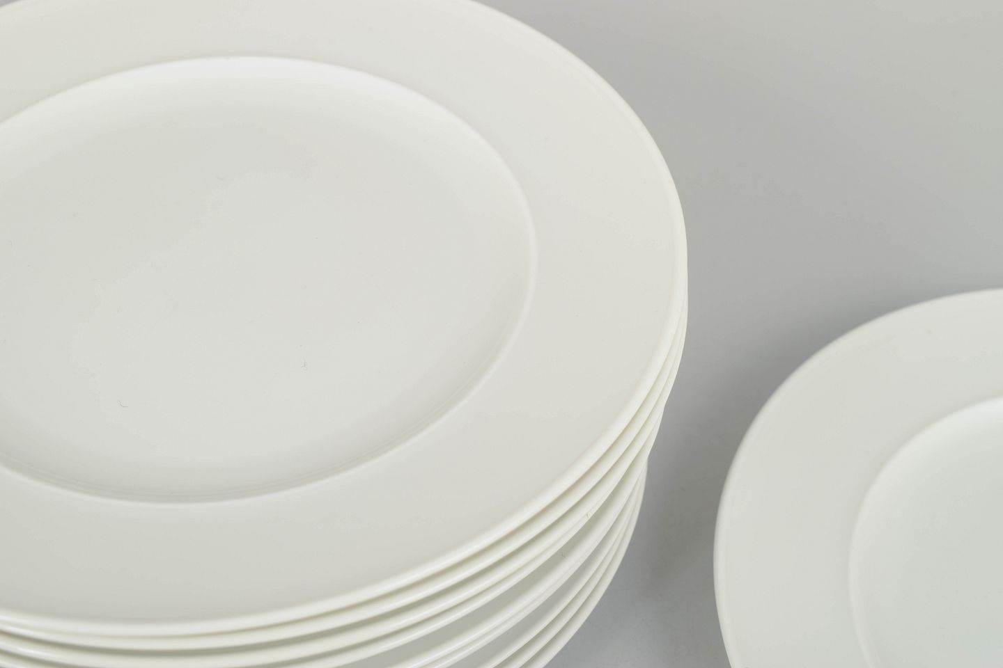 Simple and elegant salad plates in white porcelain with a classic form and gently raised rim. A timeless design by Rosenthal, suitable for both everyday use and table settings.