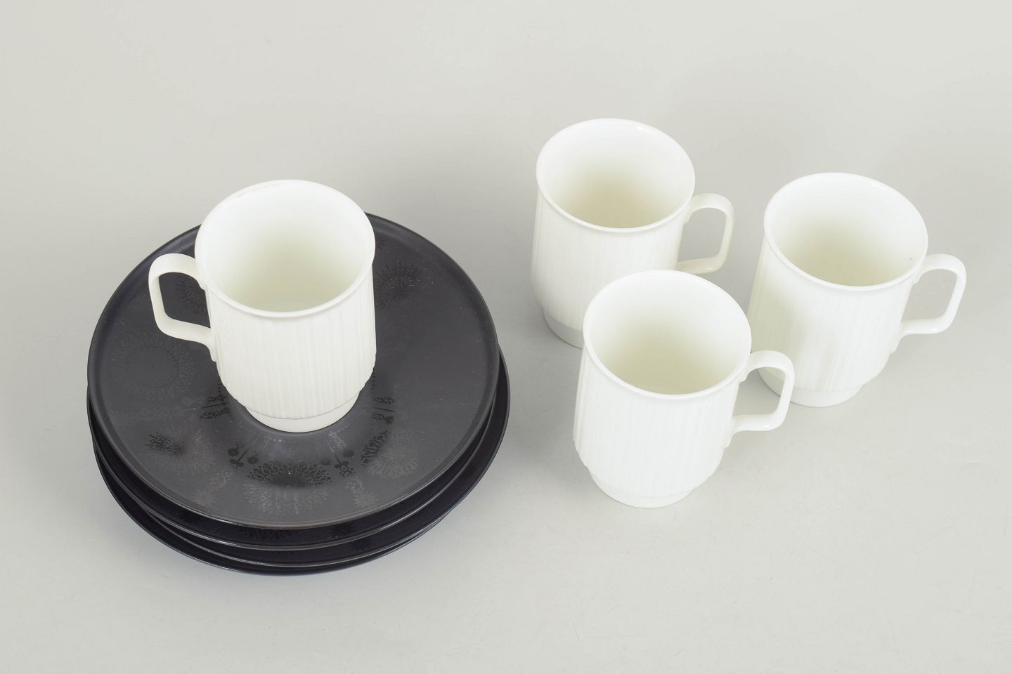 Tapio Wirkkala for Rosenthal, set of four demitasse espresso cups with matching saucers.
