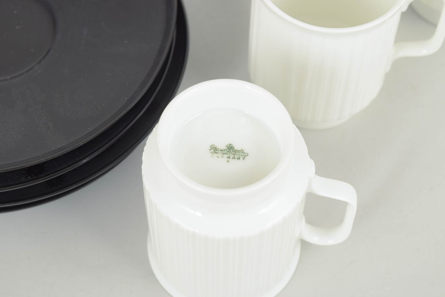 Elegant porcelain espresso cups with matching saucers, designed in a refined and functional style characteristic of Tapio Wirkkala’s work for Rosenthal in the 1980s.