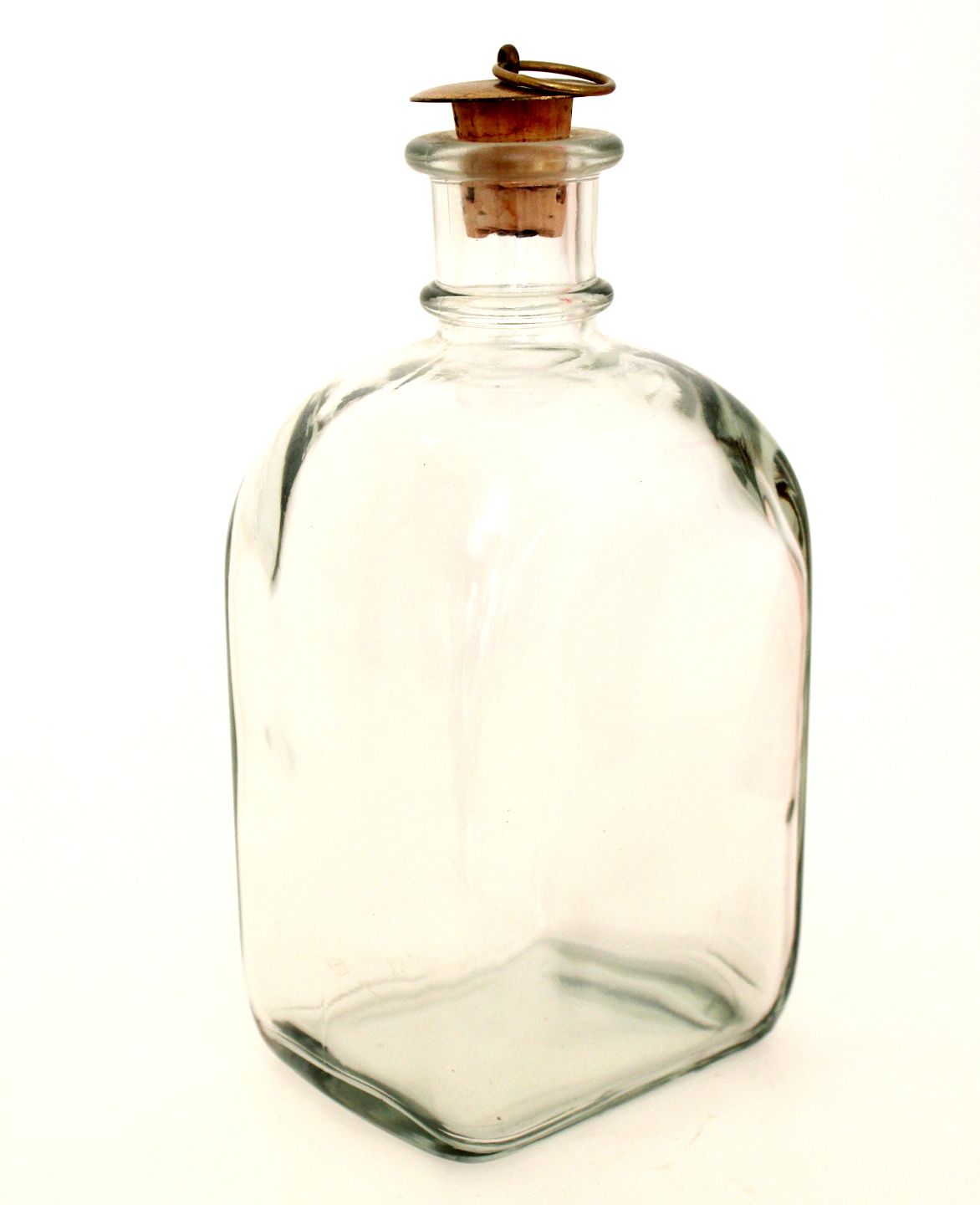 Holmegaard, klar kantineflaske med messingprop. Har samme mål som juleflaskerne. Højde med prop 19 cm. 9 x 7 cm. Pris: 225 kr. stk. Lager: 1