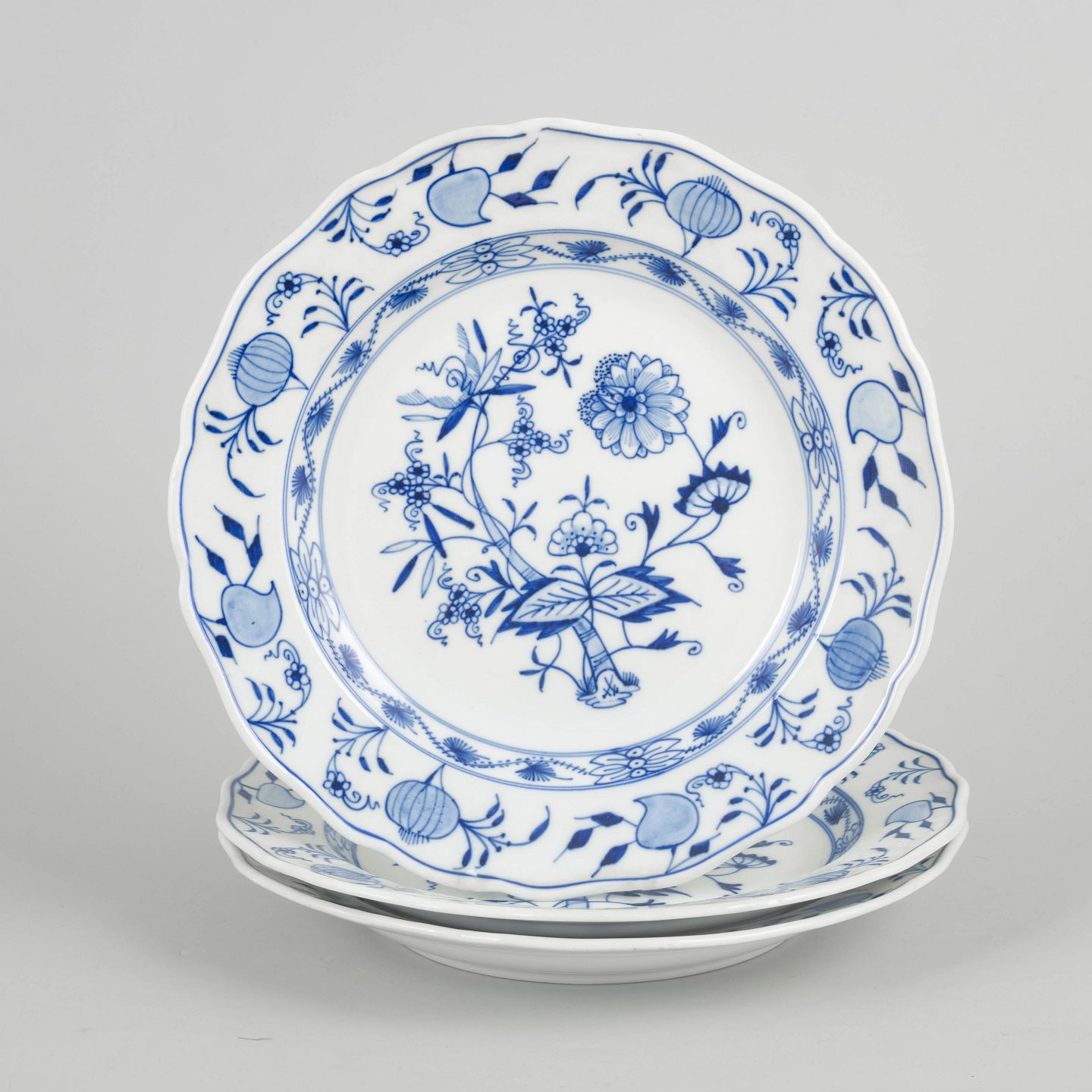 Meissen Blue Onion, set of three dinner plates.