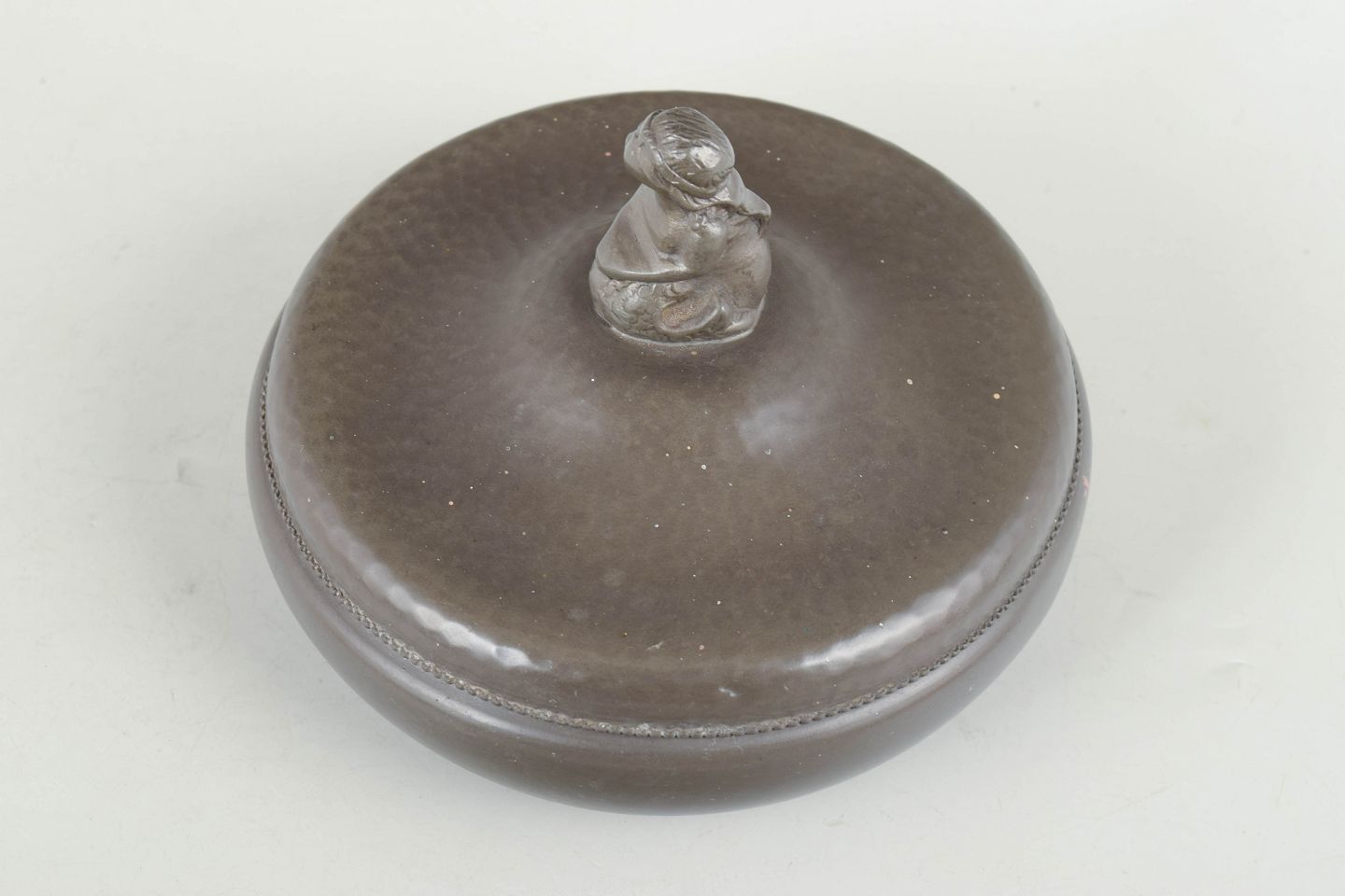 Chr. R. Kunst tin, lidded bowl with figural finial.