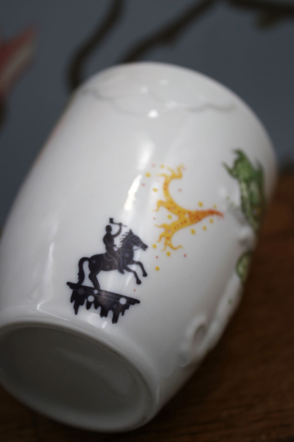Children's mug with fairy tale motifs designed by Shane Brox in collaboration with Royal Copenhagen from his picture book "Maskerade" from 2007 which forms the basis for an imaginative children's set of the same name.