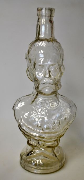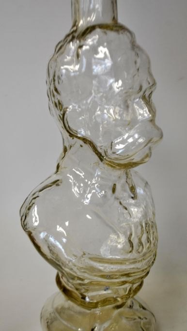 Portrait bottle in clear glass. 20th century. Depicting King Victor Emmanuel III of Italy. Height: 32 cm.