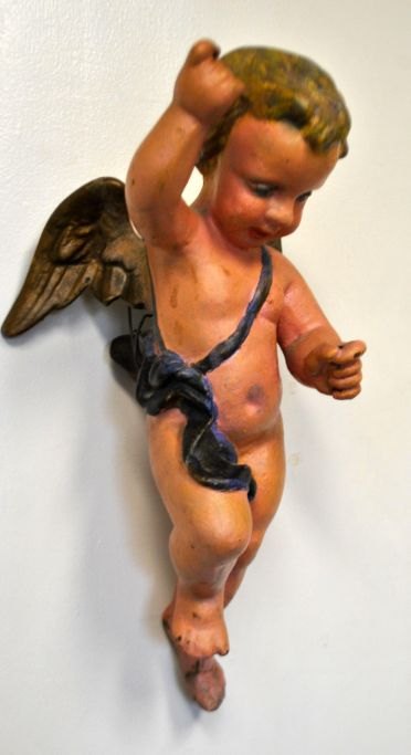 Baroque angel, 18th century. In cast painted pewter. With wings. H.: 28 cm.