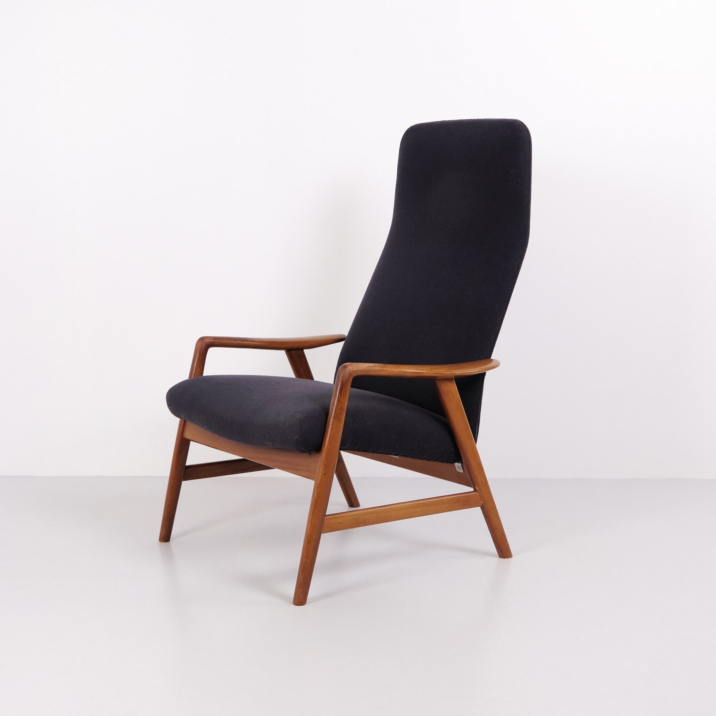 Contour Set 327 lounge chair designed by Alf Svensson for Ljungs Industrier AB, Sweden. Frame made of teak with original upholstery. The backrest can be adjusted in three different positions. Original label preserved underneath the seat. Alf Svensson was a Swedish furniture designer active from the 1950s to the 1970s and known for furniture in the Scandinavian modern style.