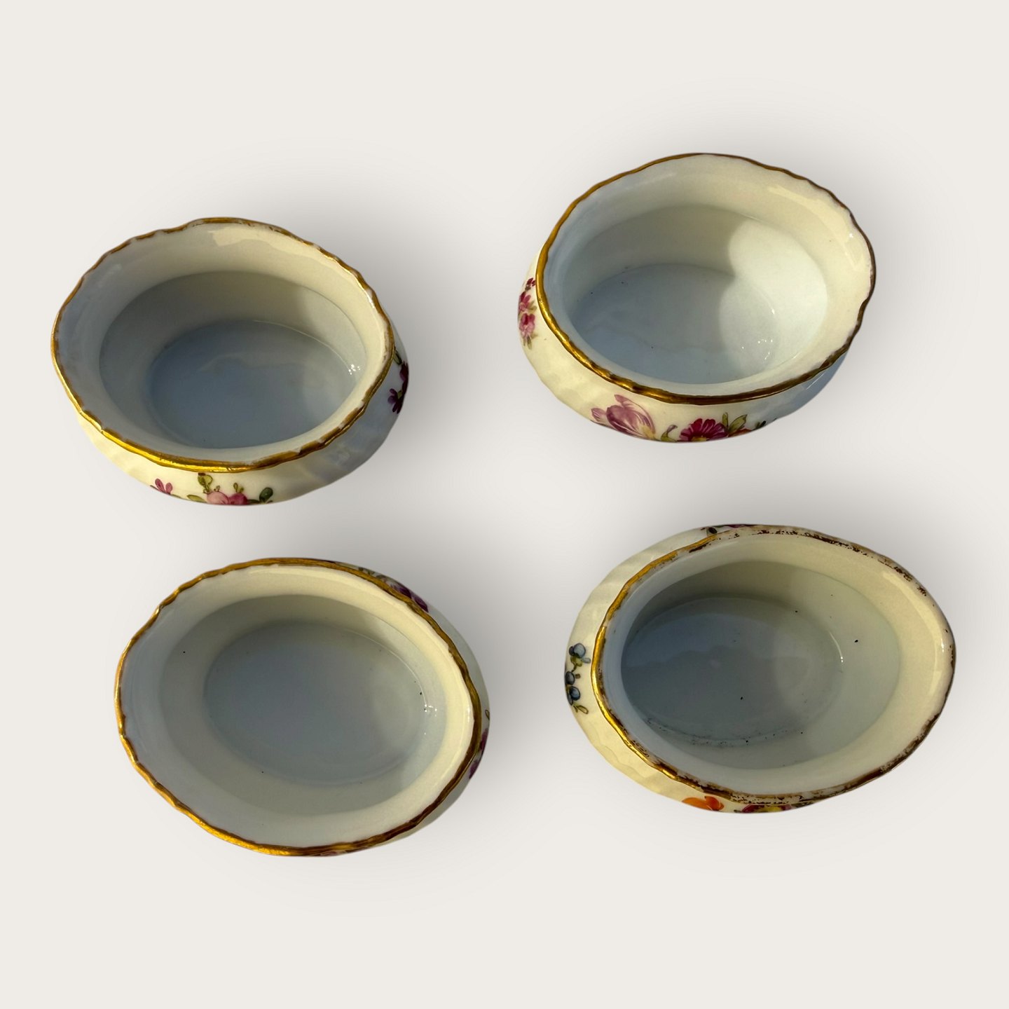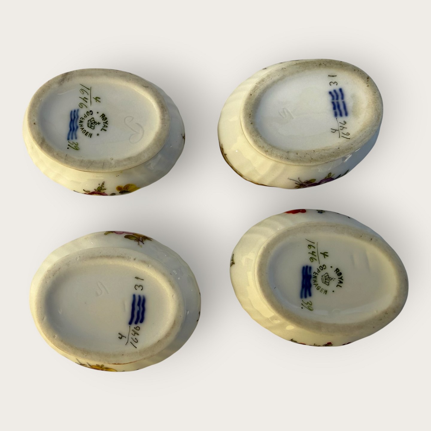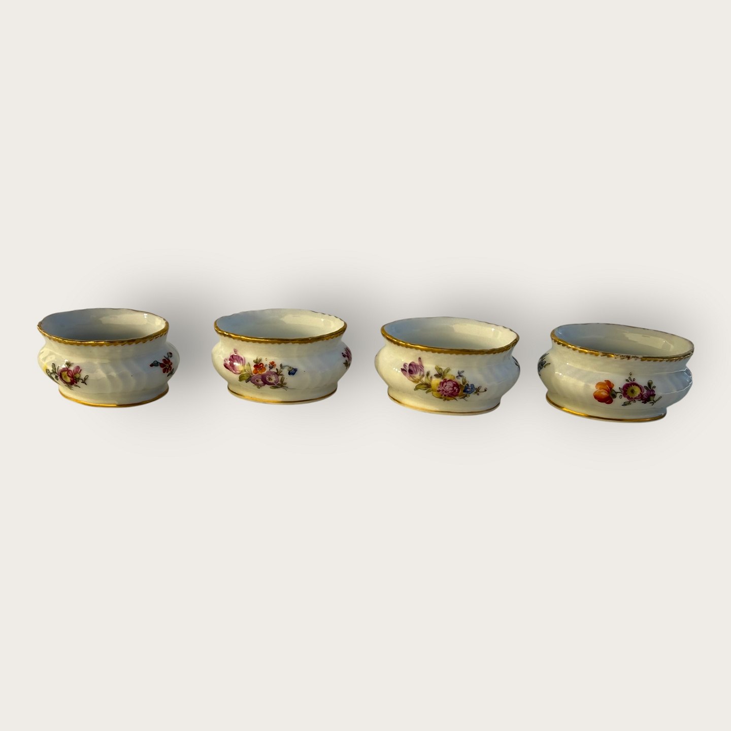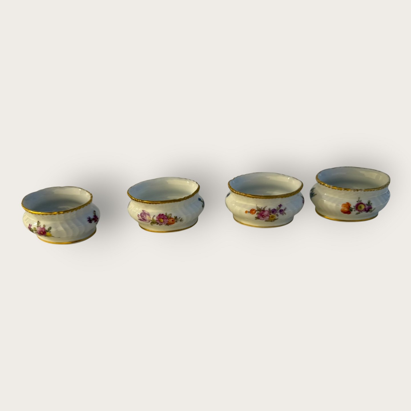 Royal Copenhagen, Full Saxon flower, small salt bowl, # 4/1646, Dimensions: 6x3cm *One with a little wear on the gold edge, otherwise in good condition*