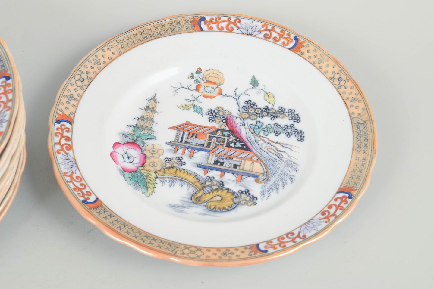 Lunch plates in faience with oriental-inspired decoration in polychrome colours and finely detailed painting in Japanese style, characteristic of Rörstrand’s japonisme production from the early 20th century.