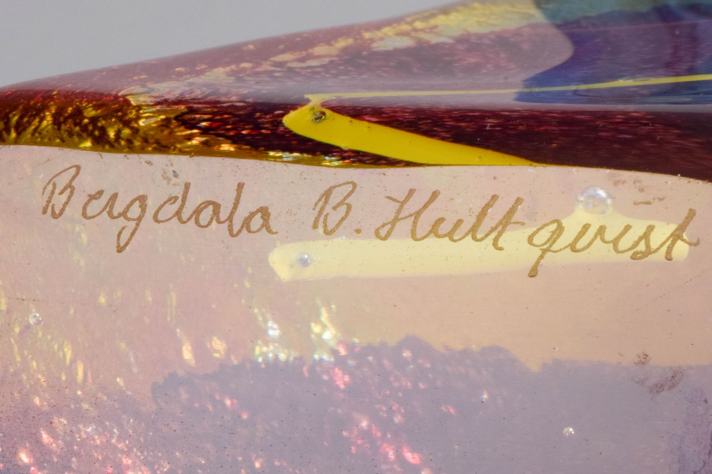 Björn Hultqvist (born 1945) is a Swedish glass artist associated with Bergdala glassworks. He is known for unique art glass pieces featuring organic forms and vibrant colour compositions, often produced as one-off works with strong emphasis on craftsmanship and artistic expression.