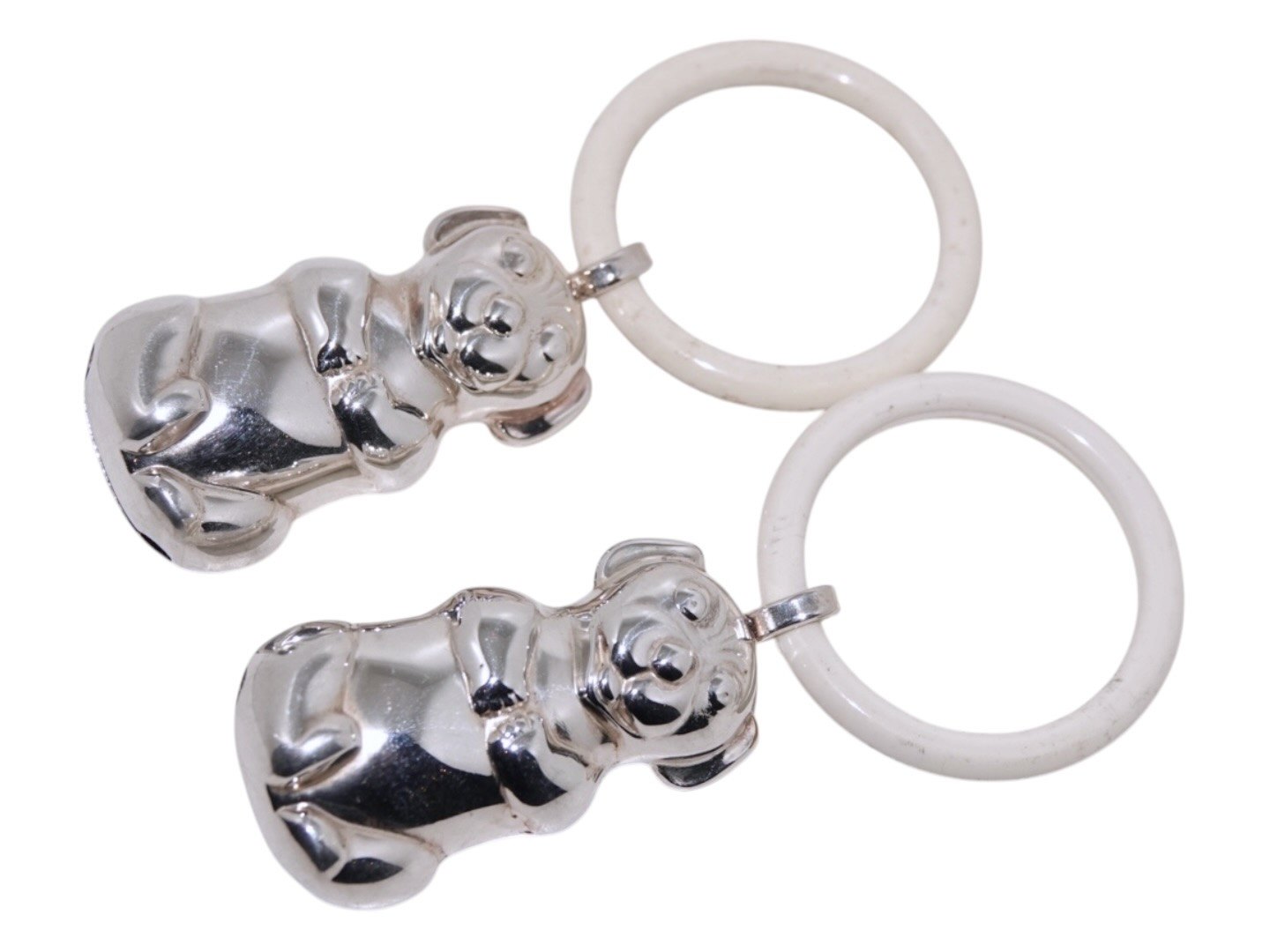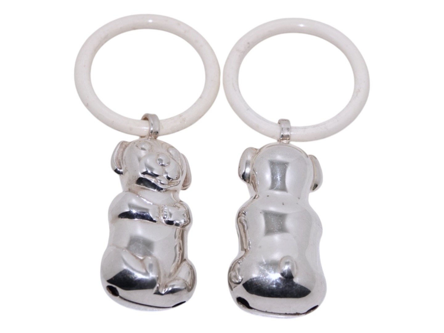 Silverplate Baby rattle shaped as a dog.