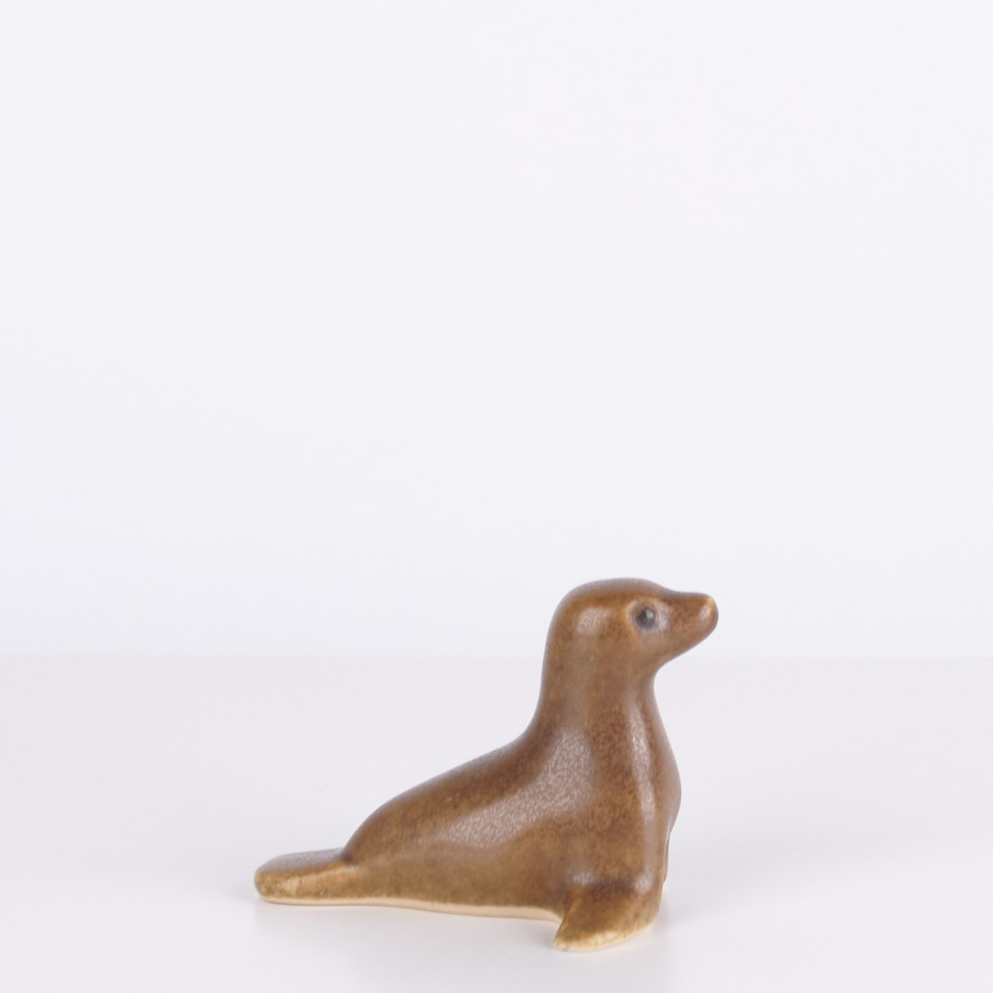 Seal figure by Knud Basse made in glazed ceramic. The figure was produced in Denmark in the 1960s. Knud Basse is known for ceramic animal figures with nature motifs produced during the period.