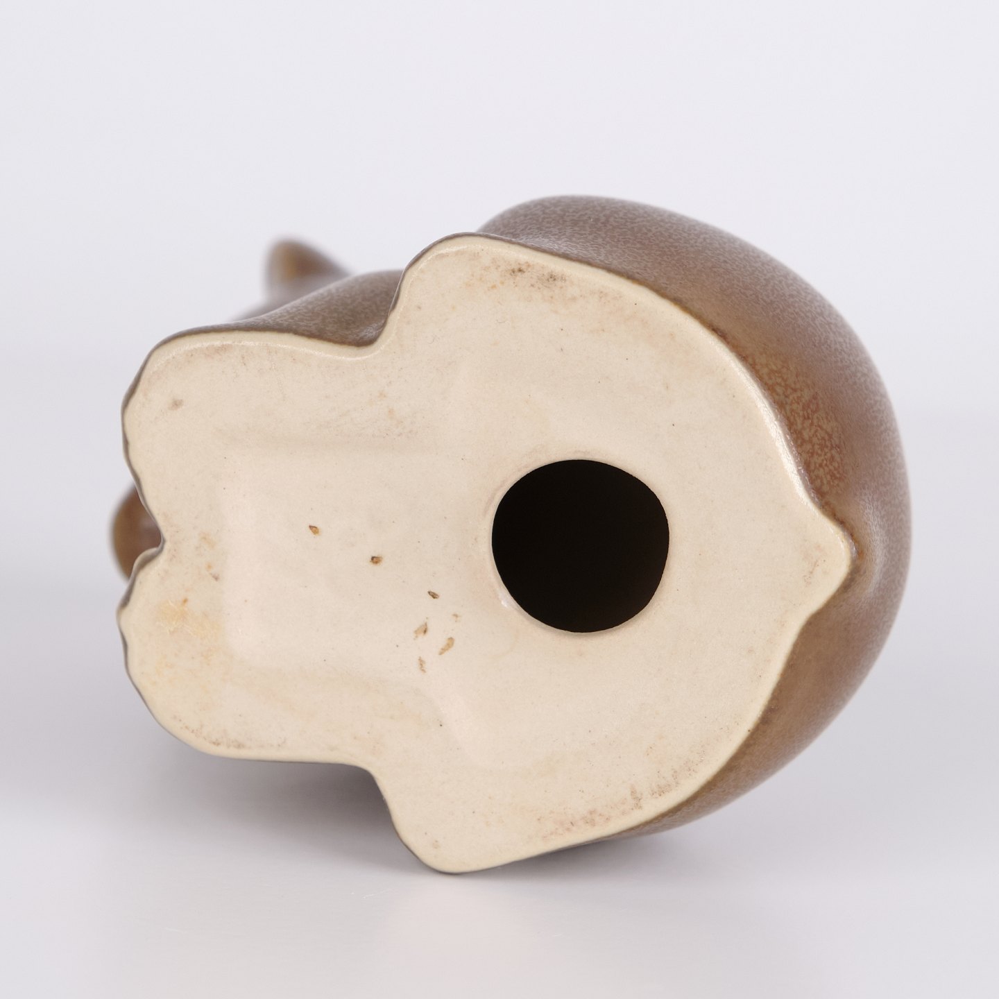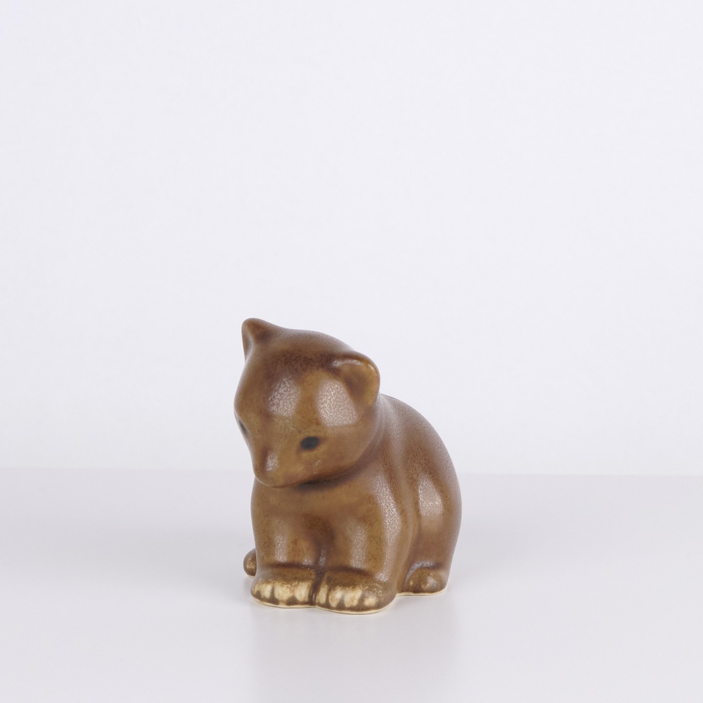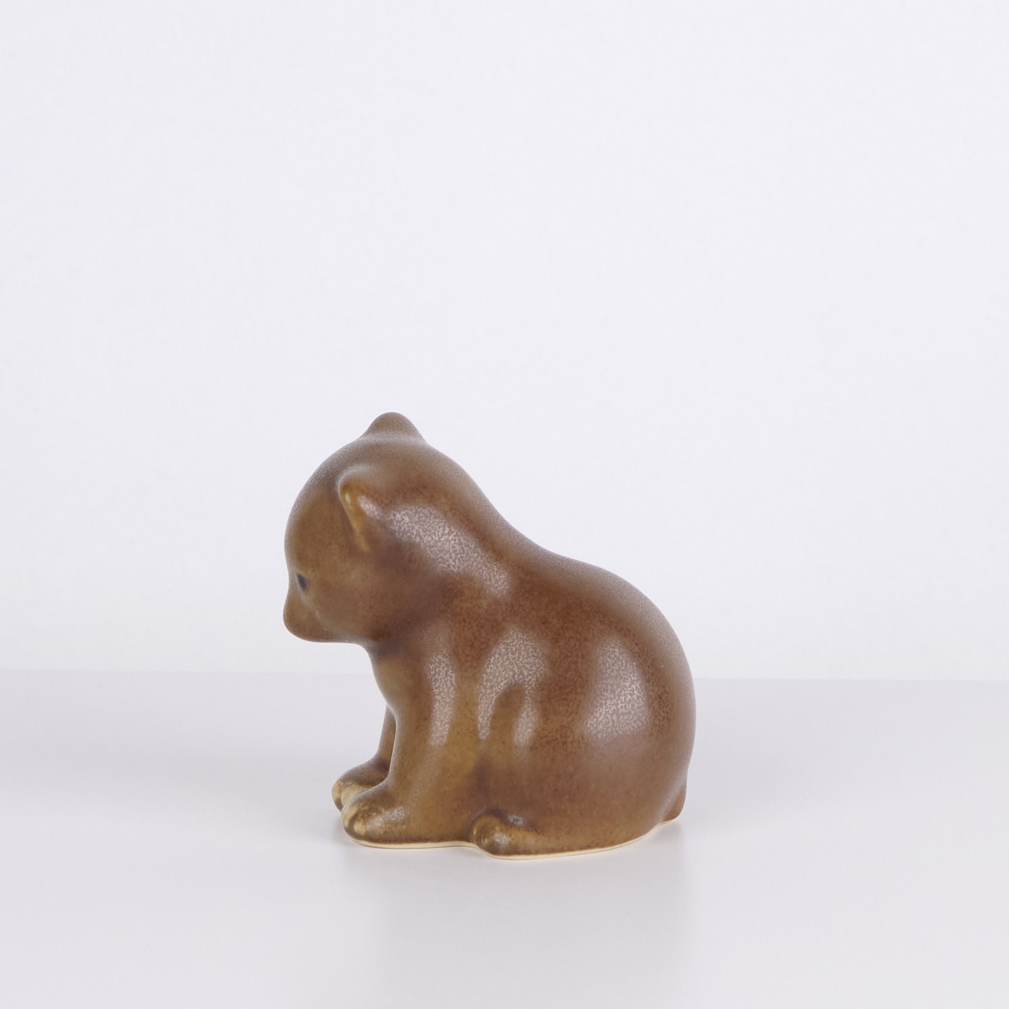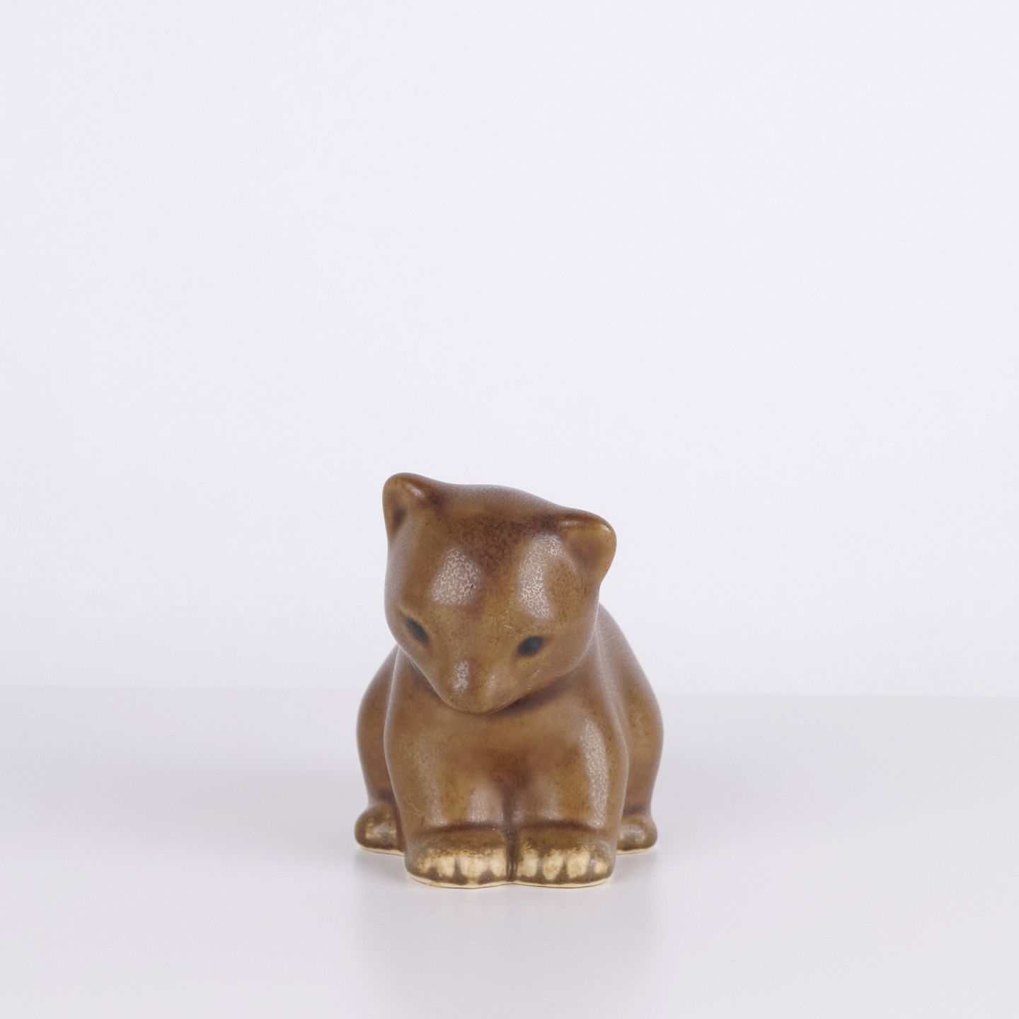 Cat figure by Knud Basse made in glazed ceramic. The figure has soft organic shapes and a calm stylized expression, characteristic of Knud Basse’s popular animal figures. Danish art pottery and sought-after collector’s item from the mid-century period.