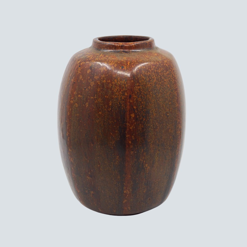 Arne Bang; Stoneware vase with red and brown glaze