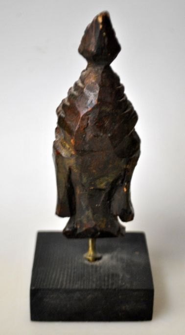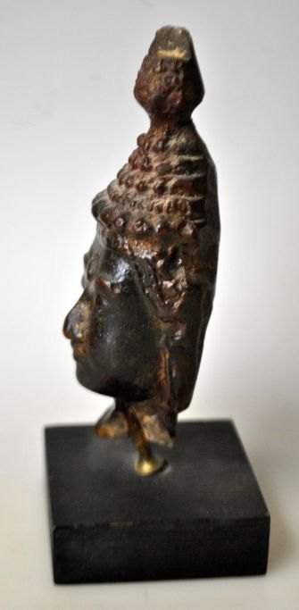 Antique Buddha in carved stone, 19th century. On a small wooden base. H.: 13 cm. Height with base: 15 cm.