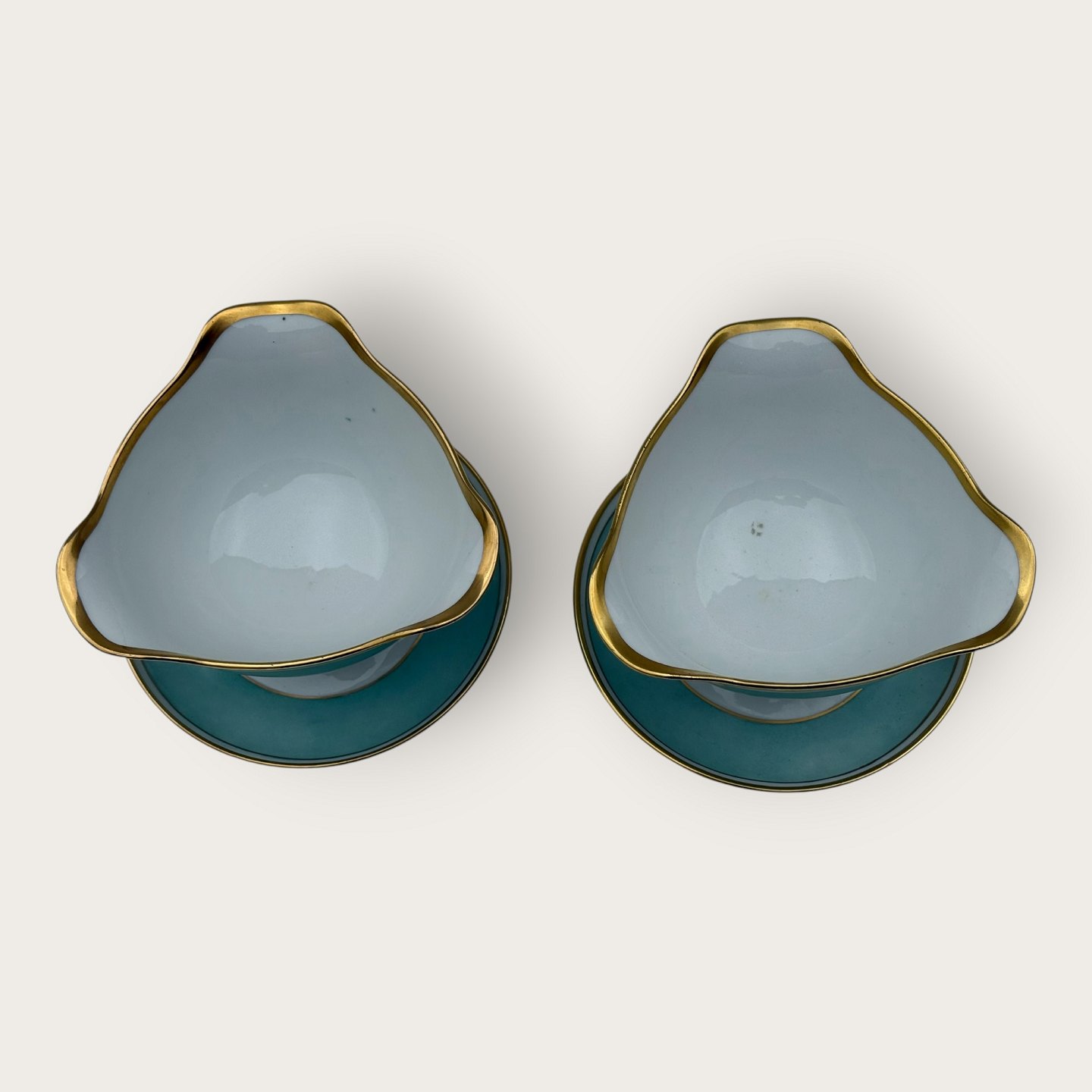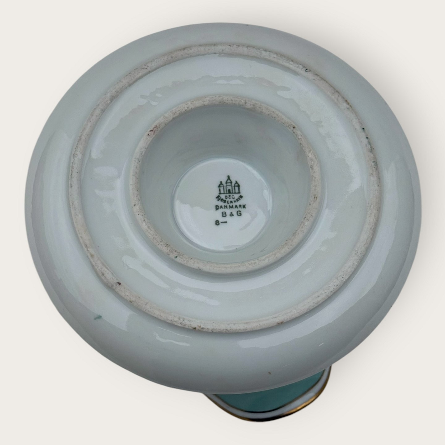 Bing & Grondahl, Form 643 with wide turquoise decoration and gold rim, Sauce bowl, 10.5cm high, width 17cm, 2nd grade, *A few small marks under the glaze (see photo) otherwise good condition*