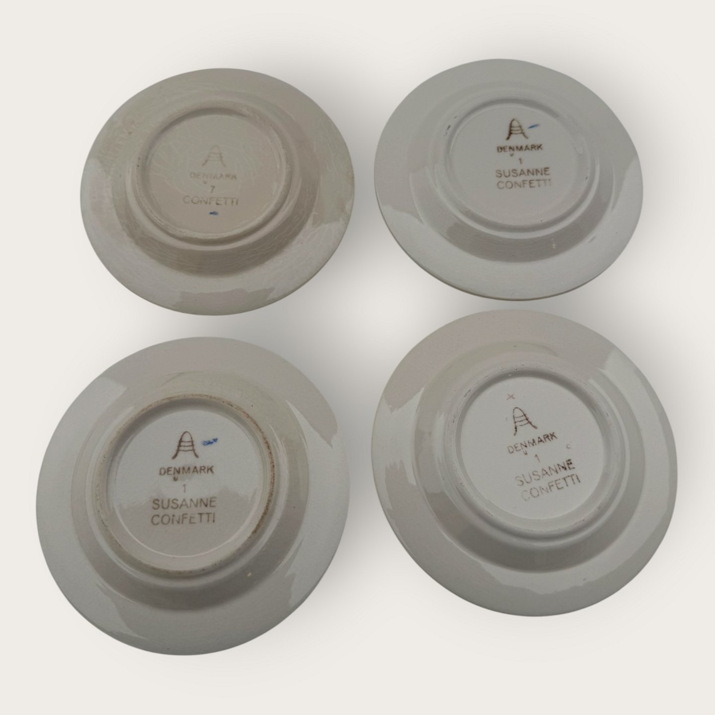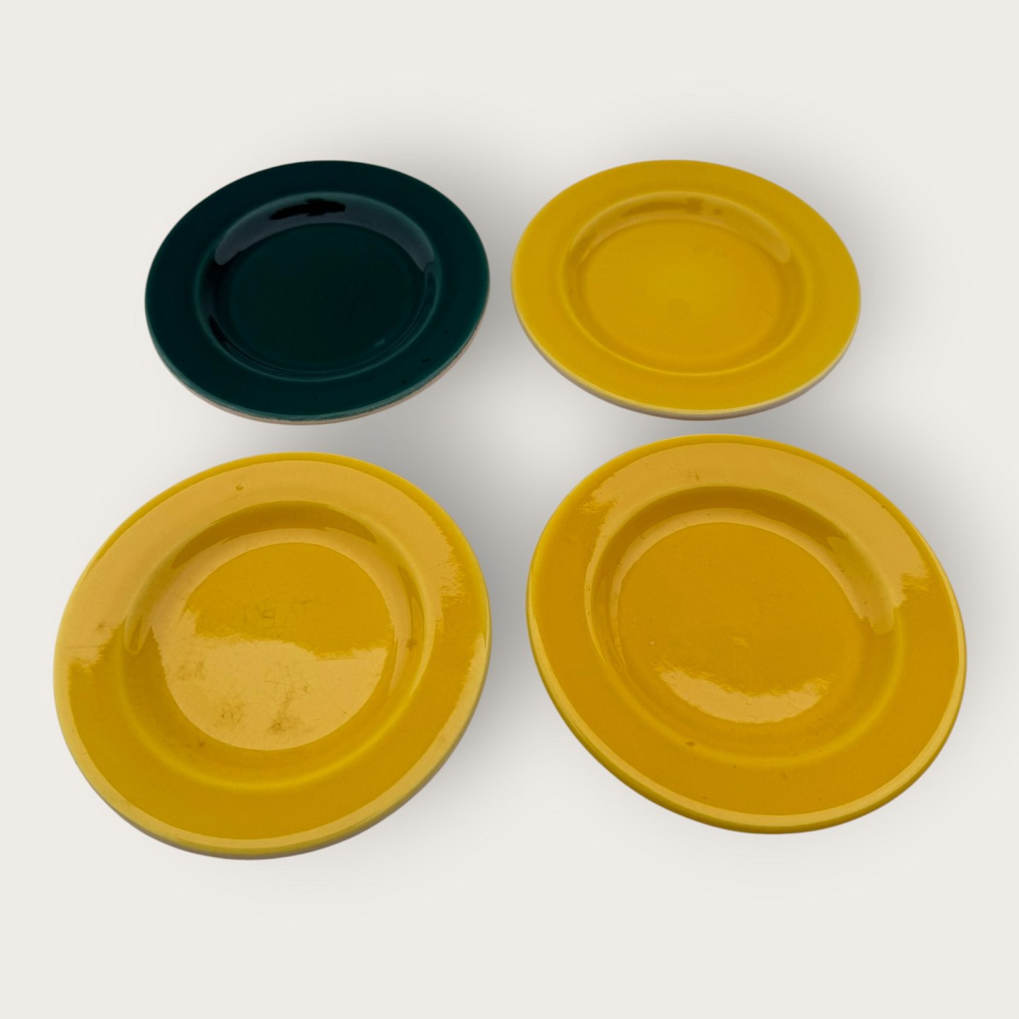 Royal Copenhagen, Aluminia, Confetti / Susanne, 4 small plates, Yellow and green, 9.5cm in diameter *nice used condition*