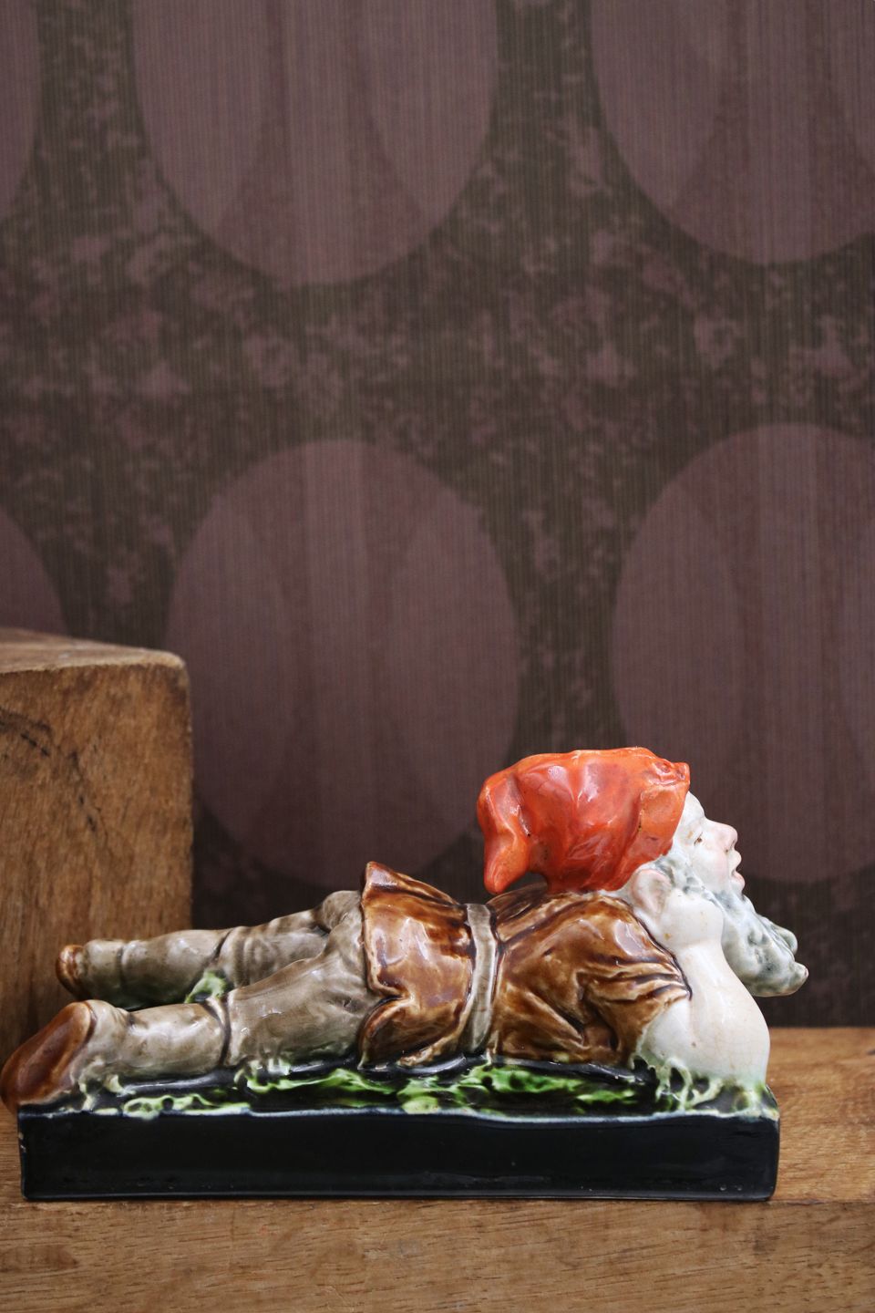 Antique, German ceramic elf in fine majolica glaze from approx.1880.