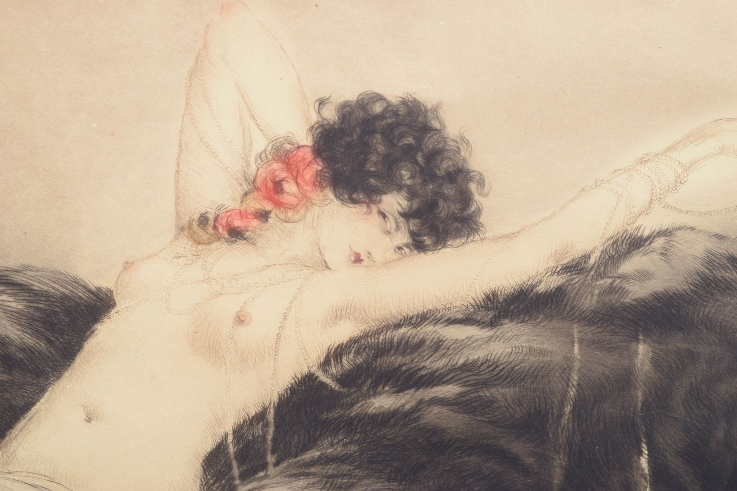Louis Icart (1888–1950) was a French painter, graphic artist, and illustrator, born in Toulouse and later active in Paris. He became one of the leading figures of the Art Deco period, particularly known for his elegant and sensual depictions of women, often produced as etchings using aquatint and drypoint techniques. Icart also worked in fashion illustration and book art, gaining wide popularity in both Europe and the United States during the interwar years.