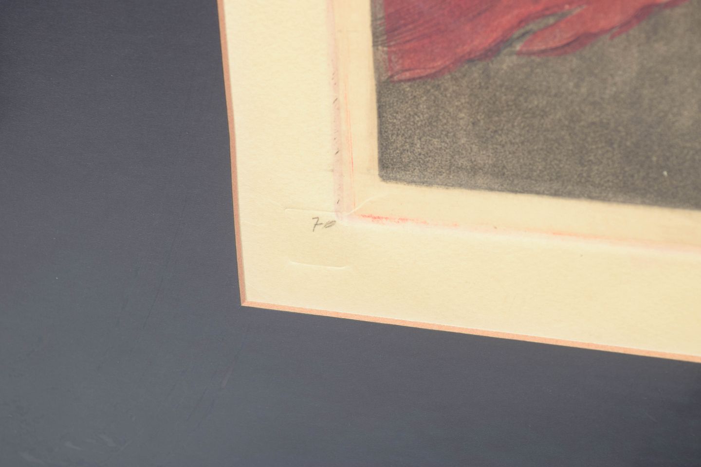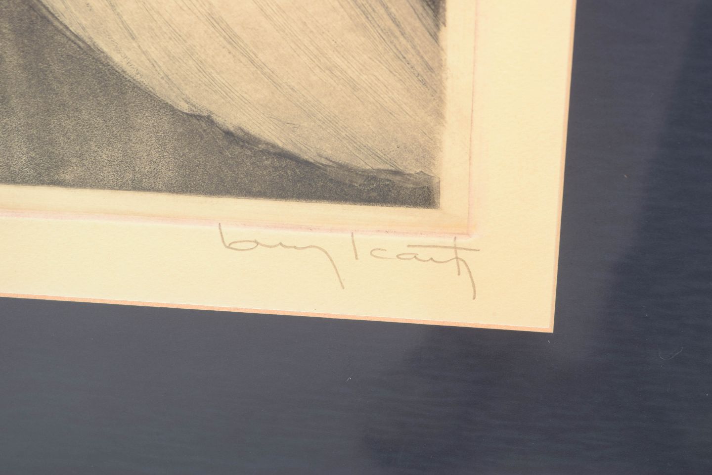 Elegant and atmospheric composition featuring two figures within an architectural setting, executed in Icart’s characteristic Art Deco style with refined linework and soft tonal transitions. Signed in pencil and numbered 70. Dated 1928.