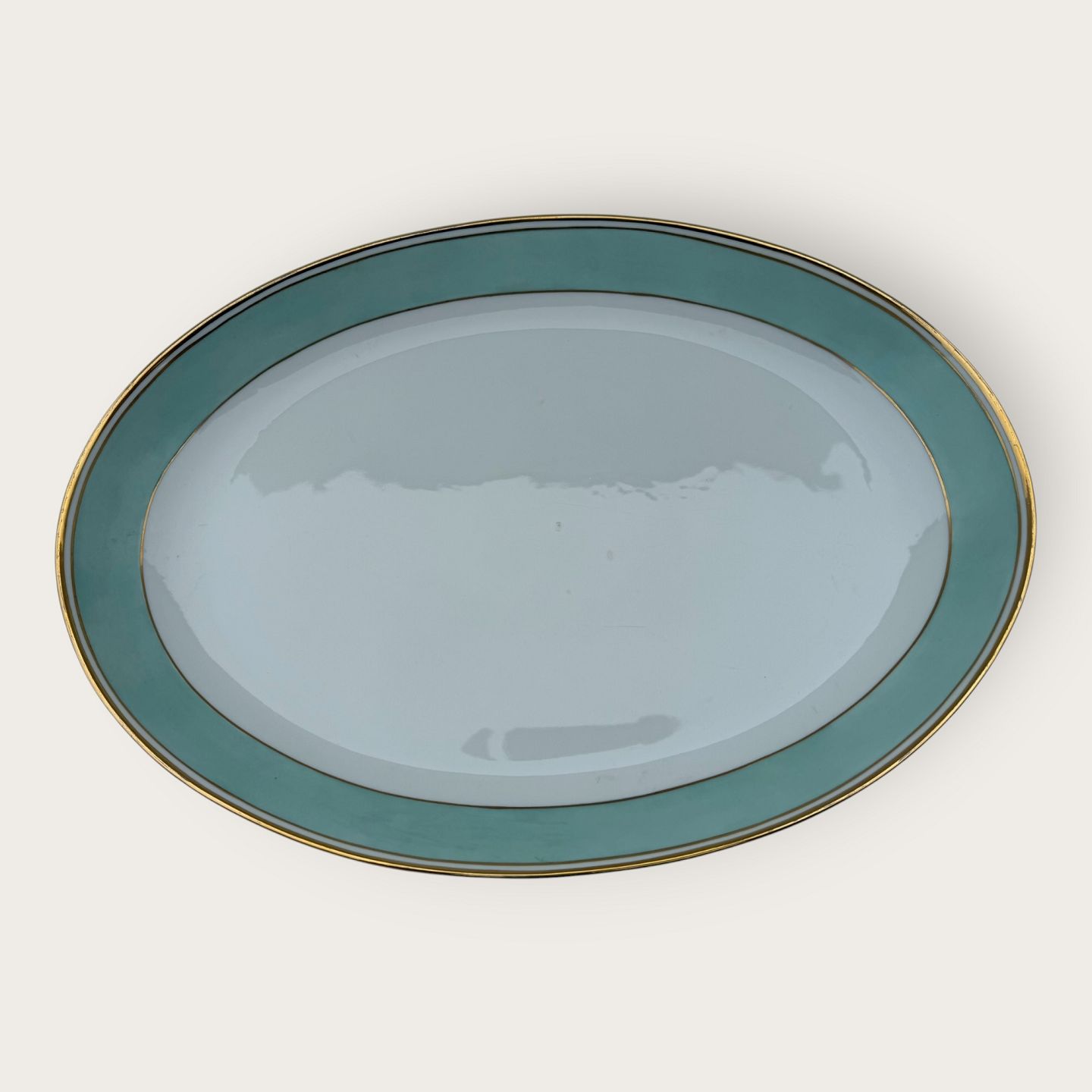 Bing & Grondahl, Form 643 with wide turquoise decoration and gold rim, Large Serving Dish, 46x33cm, 2nd grade, *nice condition*