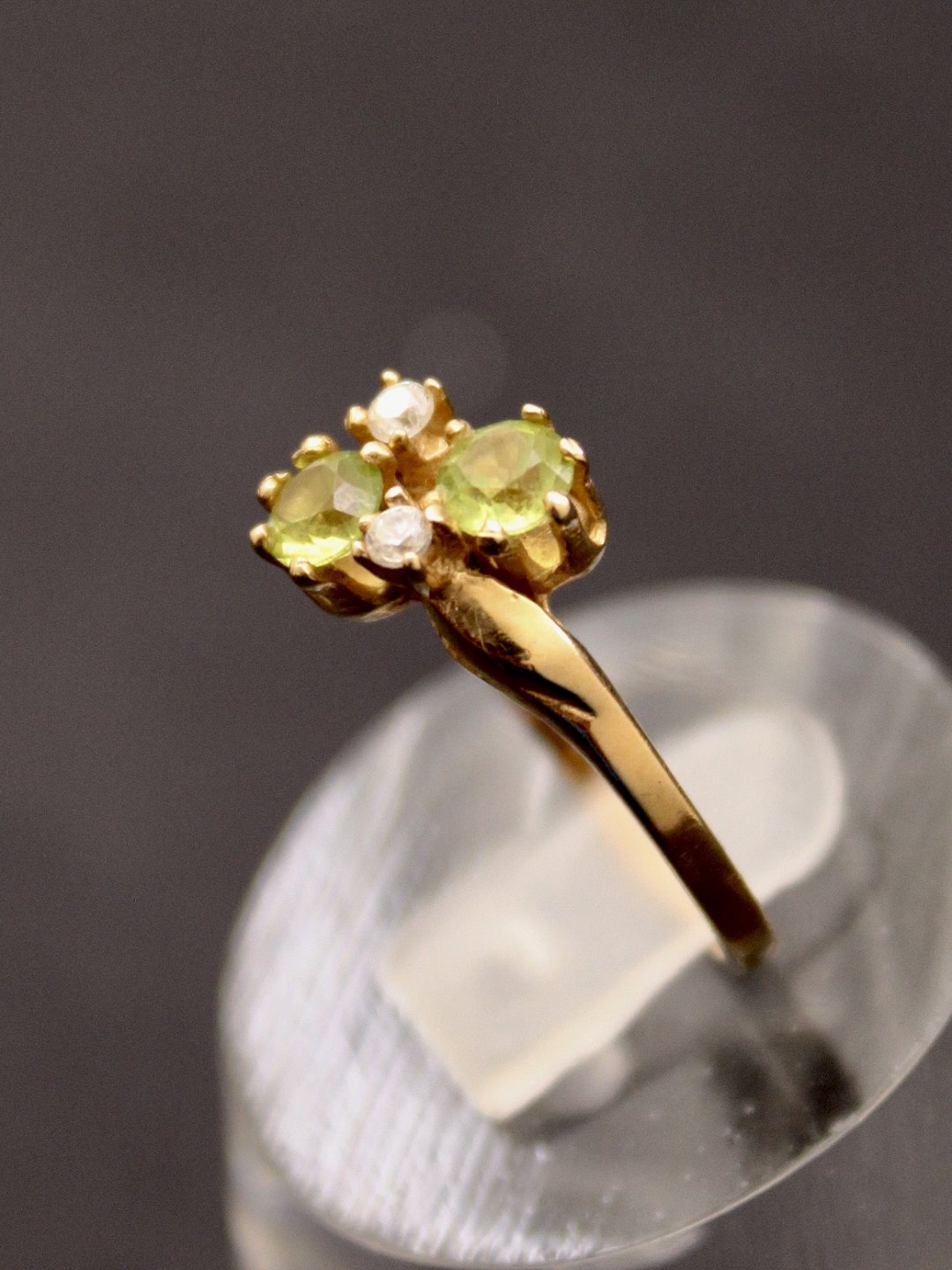 14 karat gold ring size 54 with 2 clear and two light green stones item no. 635271
