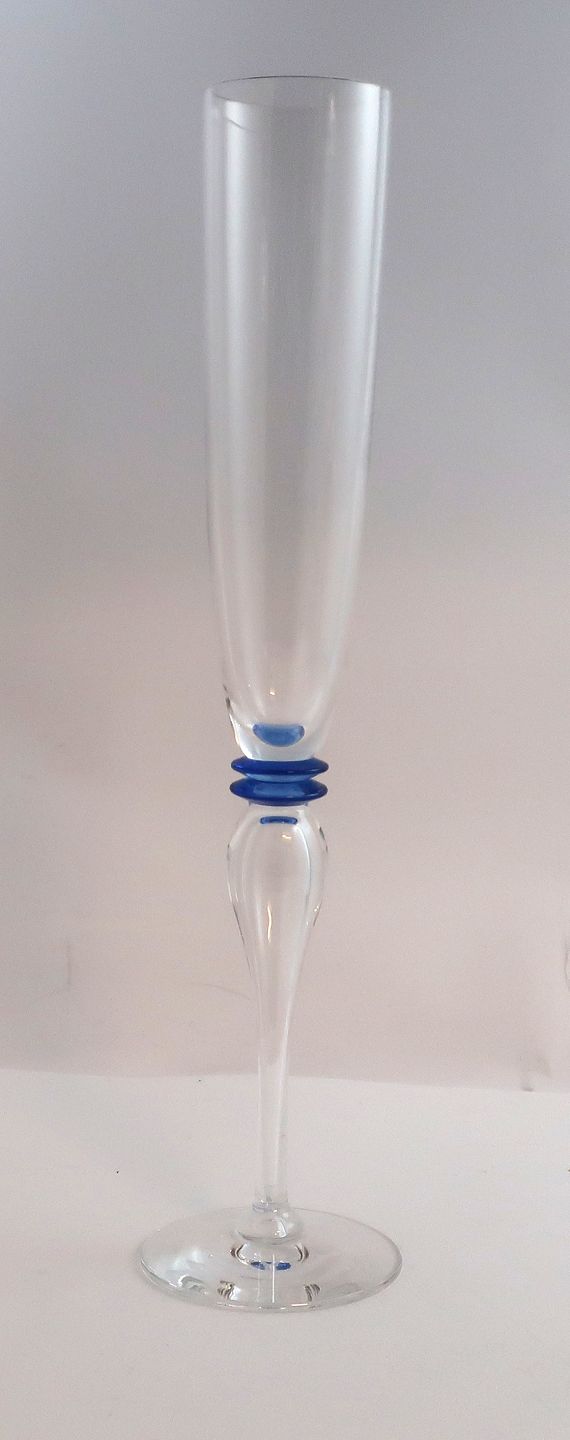 Attica, Royal Copenhagen with blue deco. Design Anja Kjär. Champagne glass. Height 29 cm.