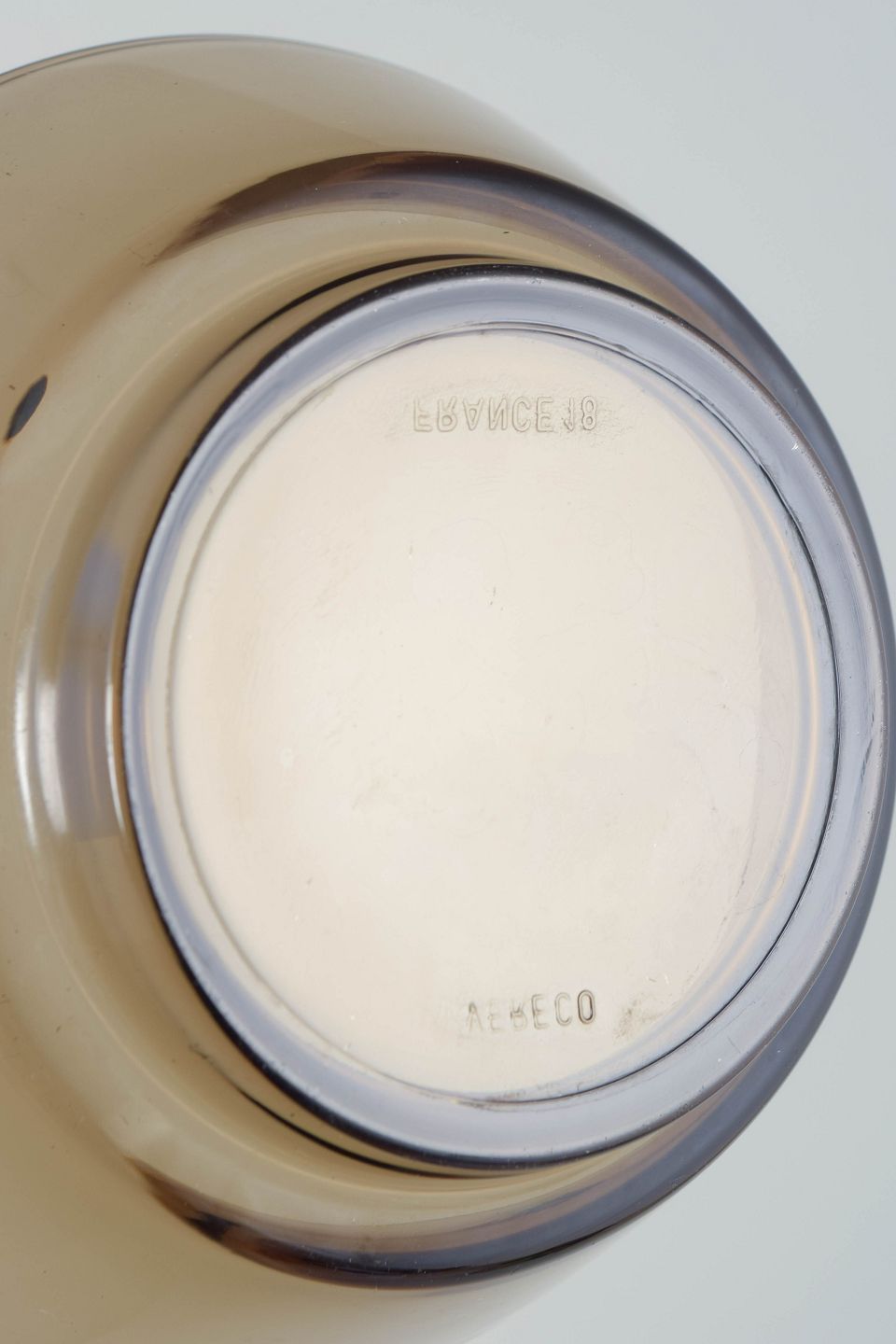 Vereco is a French glass manufacturer founded in 1946, known for functional and durable household glassware in pressed glass. The company gained wide distribution across Europe in the mid-20th century, combining simple design with practical use, often in distinctive tinted glass such as smoky tones.