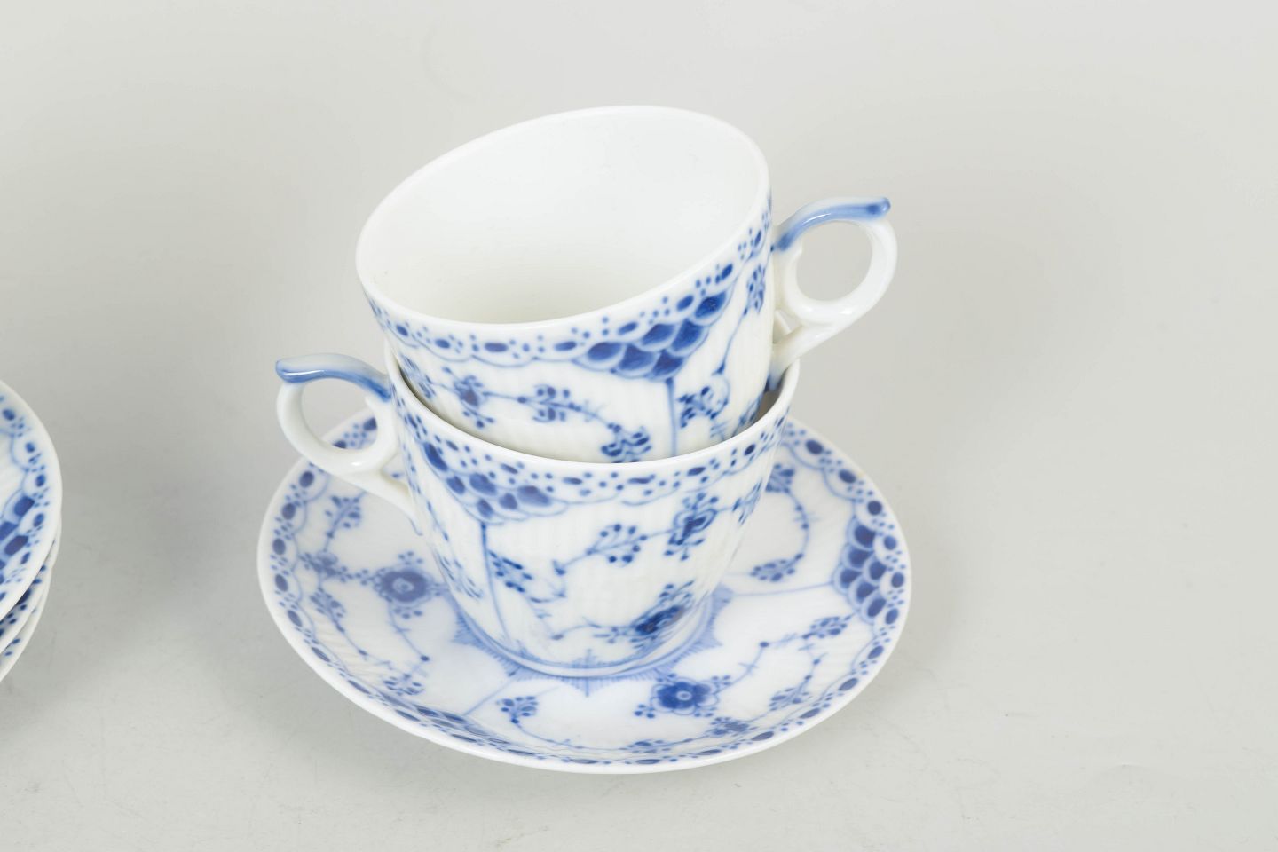 Royal Copenhagen Blue Fluted Half Lace, set of four coffee cups with saucers.