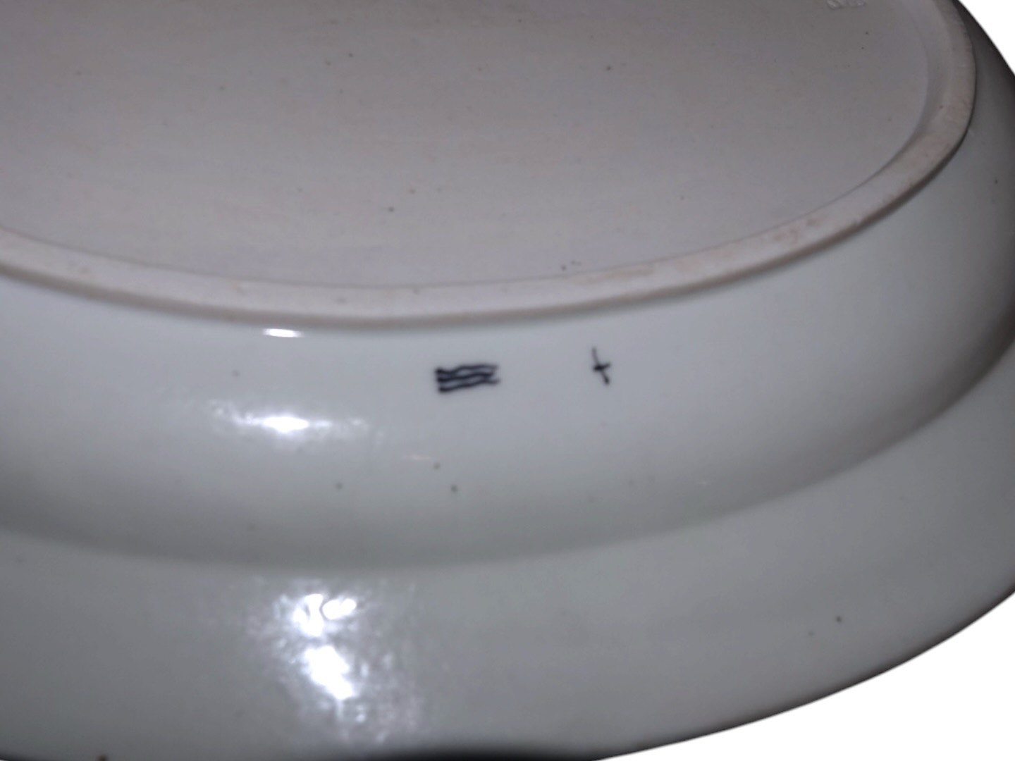 The platter has a charming imperfect shape. It is almost a little wavy. There is one large and two small chips, please see the pictures. Otherwise excellent condition.