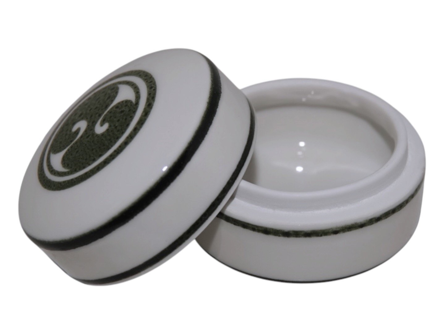 Royal Copenhagen art porcelain, small lidded box with green decoration designed by artist Alev Siesbye.