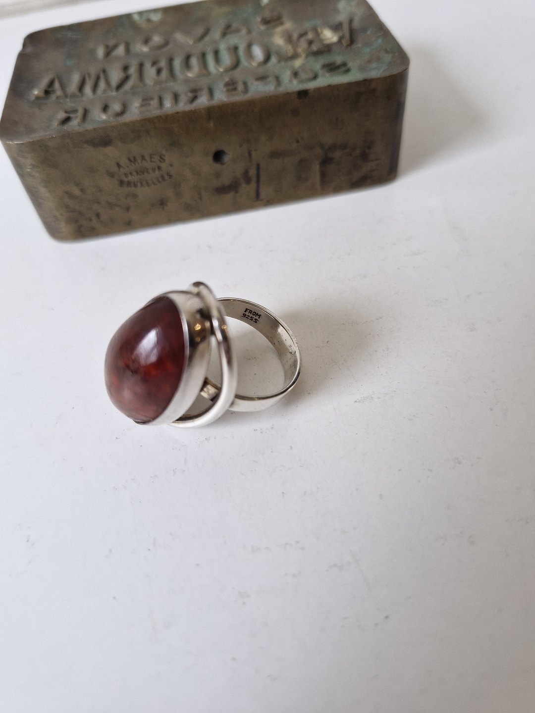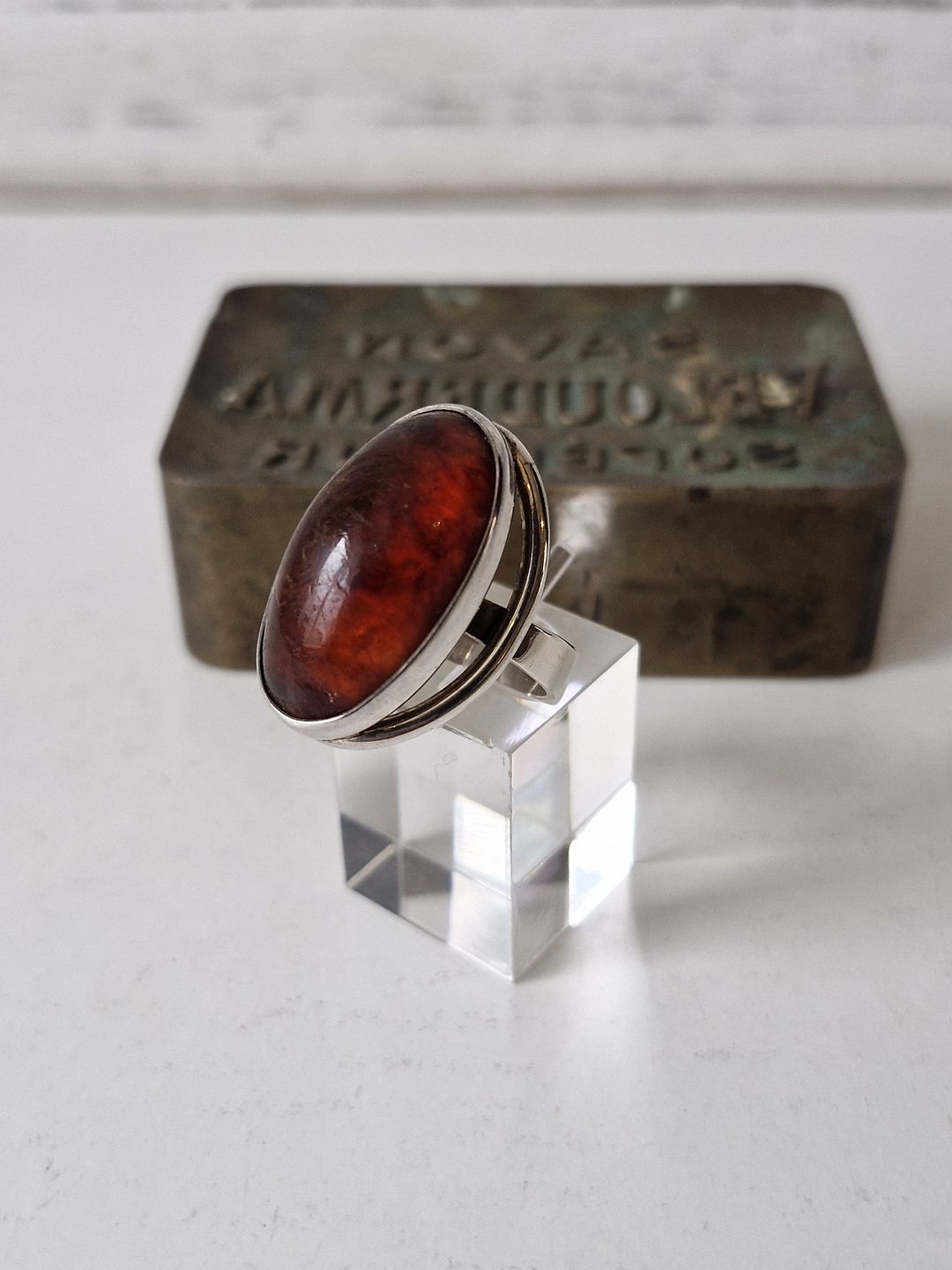 N.E.From vintage ring in sterling silver with oval amber pearl